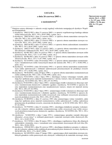 USTAWA z dnia 26 czerwca 2003 r. o nasiennictwie1)