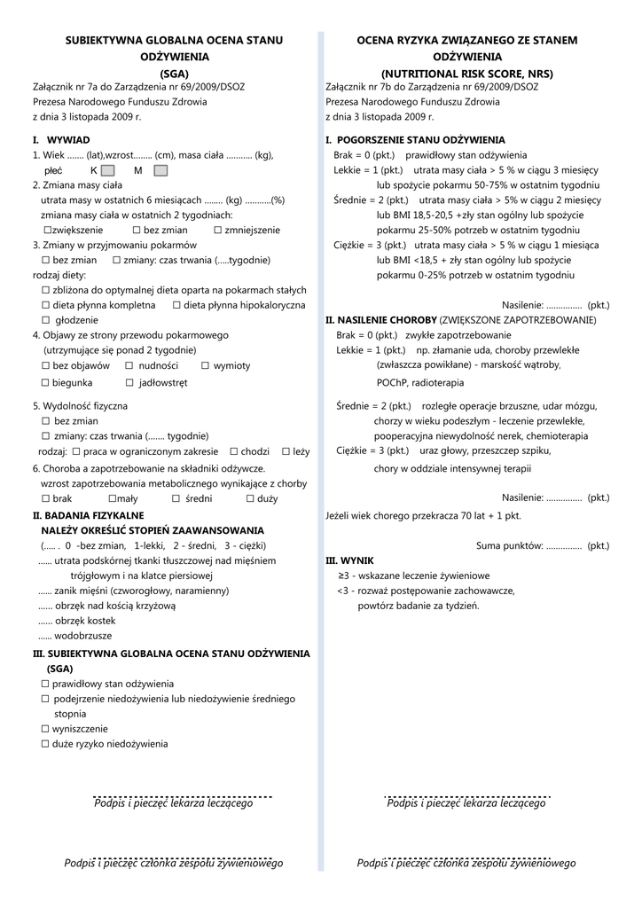 (SGA), oraz Ocenę ryzyka związanego ze stanem odżywienia