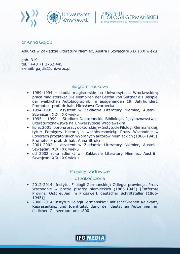 Pełny Biogram - Instytut Filologii Germańskiej UWr