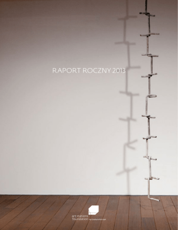 raport roczny 2013 1 spis treści raport roczny 2013 O fundacji 4 Struktura organizacyjna 5 Program wystawienniczy 8 Program taneczny 27 Kalendarium 58 o fundacji raport roczny 2013 O FUNDACJI Program performatywny – Stary Browar Nowy Taniec – to wielopoziomowa koncepcja promocji i prezentacji tańca współczesnego, zakładająca organizowanie spektakli i pokazów, pobytów rezydencyjnych, projektów edukacyjnych i badawczych. Misją jest popularyzacja współczesnej sztuki choreograficznej oraz wspieranie profesjonalnego rozwoju młodych polskich artystów. Celem natomiast stało się stworzenie w Poznaniu miejsca regularnych prezentacji awangardowych trendów w sztuce tańca i przestrzeni kreacji tańca współczesnego. Ważnym zadaniem programu jest także rozbudzenie zarówno w artystach, jak i w publiczności głębszej świadomości bogactwa współczesnych zjawisk tanecznych, a poprzez rozpoczęcie nad nimi dyskusji i pobudzenie teoretycznej refleksji, przygotowanie odpowiedniego gruntu dla dynamicznego rozwoju sztuki choreografii w Polsce. Stary Browar Nowy Taniec jest partnerem w kilku europejskich projektach unijnych, od momentu swojego powstania nieprzerwanie kreując w Starym Browarze platformę spotkań artystów polskich i zagranicznych, oraz konsekwentnie promując polski taniec na arenie międzynarodowej. Projekty artystyczne i performatywne Fundacji skupione są wokół Dziedzińca Sztuki, gdzie znajduje się galeria sztuki Art Stations oraz budynek Słodowni z platformą tańca i salami wystawienniczymi. Kolekcja Grażyny Kulczyk udostępniana jest dla szerokiej publiczności nie tylko poprzez organizowane w galerii Art Stations wystawy, ale również poprzez dzieła sztuki, które wypełniają przestrzenie całego kompleksu Stary Browar. To najbardziej imponujący efekt konsekwentnego wdrażania w życie autorskiej idei 50/50 – charakteryzującej obecnie wszystkie działania Grażyny Kulczyk. Fundacja została powołana przez Fundatora Grażynę Kulczyk. Art Stations Foundation by Grażyna Kulczyk to autorski projekt kolekcjonerki i promotorki szeregu działań z dziedziny kultury, sztuki oraz biznesu. Fundacja znajduje się w samym sercu Starego Browaru, jednego z najważniejszych centrów handlowo-kulturalnych w Europie. Kompleks złożony z XIX-wiecznych zabudowań przemysłowych, odrestaurowanych przez Grażynę Kulczyk, uznany w 2008 roku za najlepsze centrum handlowe na świecie, otwiera przestrzeń dla harmonijnego współistnienia aktywności komercyjnej i kulturalnej dzięki formule 50/50. Filozofia łącząca 50% sztuki i 50% biznesu to świadome budowanie założeń instytucji promującej wiedzę o kulturze i sztuce w przestrzeni Starego Browaru. Art Stations Foundation by Grażyna Kulczyk realizuje dwa główne programy: wystawienniczy oraz performatywny. Prezentowane wystawy oparte są w znacznej mierze na prywatnej kolekcji Grażyny Kulczyk, która staje się przyczynkiem do konfrontacji dzieł klasyków ze światowego kręgu sztuki z artystami nieznanymi, odkrytymi przez samą kolekcjonerkę. Realizowane przez Fundację działania otwarte są na nowe, odważne strategie – kuratorzy z polskich i zagranicznych instytucji zapraszani są do współtworzenia projektów wystawowych, wnosząc nowe spojrzenie na zbiory prac. Każdej wystawie towarzyszy bogaty program edukacyjny, na który składają się oprowadzenia, wykłady oraz pokazy filmowe przeznaczone dla osób z różnych grup wiekowych – organizowane są warsztaty dla dzieci, młodzieży szkolnej i akademickiej, a także spotkania dla seniorów. Dla Art Stations Foundation by Grażyna Kulczyk ważnym narzędziem służącym popularyzacji sztuki współczesnej jest również działalność wydawnicza. Katalogi towarzyszące wystawom organizowanym przez Fundację oraz publikacje powstające we współpracy z zewnętrznymi partnerami, charakteryzują się nie tylko dbałością o warstwę merytoryczną, ale także oryginalnością rozwiązań graficznych. 4 Zarzad Fundacji Prezes Zarządu Justyna Buśko Biuro Fundacji, program wystawienniczy: koordynator biura i produkcji Ewa Dziewolska - Kawka opiekun Kolekcji Marta Kabsch koordynator projektów Kamila Woynicz koordynator techniczny ds. realizacji wystaw /grafik Kacper Czyczyło Biuro Fundacji, program performatywny: kurator programu performatywnego / Stary Browar Nowy Taniec Joanna Leśnierowska koordynatorka ds. komunikacji i promocji Agata Kołacz koordynator projektów Mikołaj Maciejewski koordynator projektów Marta Harasimowicz koordynator techniczny ds. realizacji projektów Łukasz Kędzierski 5 raport roczny 2013 PROGRAM WYSTAWIENNICZY program wystwienniczy raport roczny 2013 18.01.2013 – 05.05.2013 PERFORMER WYSTAWA, FILM, SZTUKA, ŻYCIE wystawa w galerii Art Stations wernisaż: 17.01.2013, godz. 19:00 „Performer” to przedsięwzięcie szczególne, wystawa artysty – Oskara Dawickiego, a jednocześnie łącząca różne dyscypliny – sztukę, film i literaturę – opowieść o nim samym jako postaci fikcyjnej. Tytułowy performer, alter ego Dawickiego, pojawia się tu w różnych wcieleniach, również w towarzystwie zaprzyjaźnionych artystów oraz prac z Kolekcji Grażyny Kulczyk, nieustannie badając granice między dziełem sztuki a rzeczywistością. Oskar Dawicki urodził się w 1971 roku na Kociewiu. Posługuje się metodami sztuki konceptualnej i performansu, aby reaktywować postromantyczną figurę twórcy zarażonego egzystencjalnym bólem istnienia. Uprawia ponowoczesne dzieło totalne, w którym sztuka i życie zlewają się w jedno: ciąg mniej lub bardziej spektakularnych klęsk i drobnych codziennych porażek prowadzących do ostatecznej wielkiej przegranej – śmierci. Dawicki przyjmuje rolę ironisty i iluzjonisty, wdziewa nieco przymałą i wyblakłą brokatową marynarkę, by zaczarować na krótką chwilę publiczność swoim przewrotnym poczuciem humoru i cierpkim sceptycyzmem. Przybliża nas do ostate