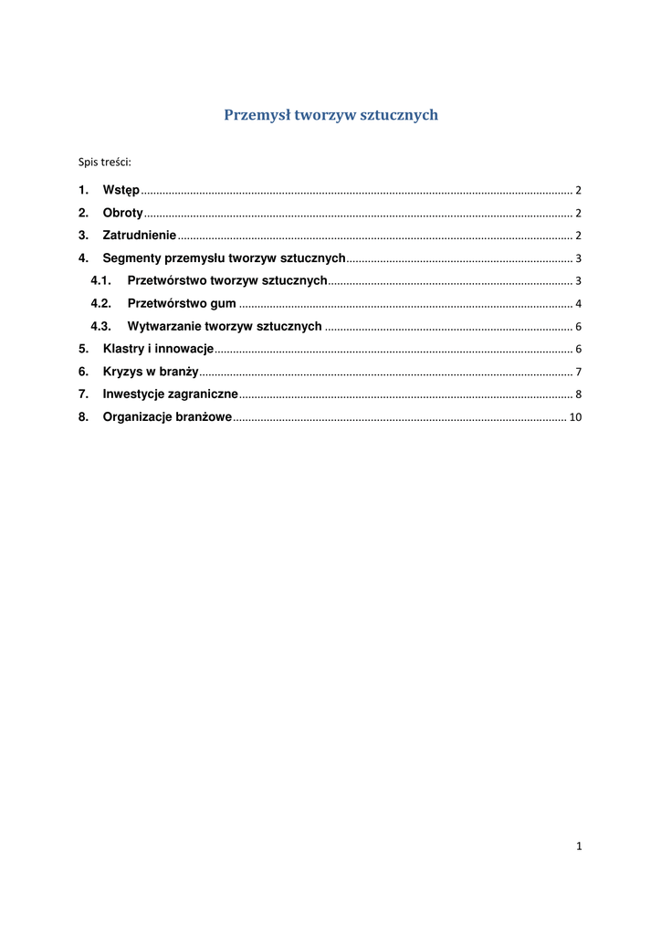 Przemysł tworzyw sztucznych Spis treści: 1. Wstęp ............................................................................................................................................. 2 2. Obroty ............................................................................................................................................ 2 3. Zatrudnienie ................................................................................................................................. 2 4. Segmenty przemysłu tworzyw sztucznych .......................................................................... 3 4.1. Przetwórstwo tworzyw sztucznych................................................................................ 3 4.2. Przetwórstwo gum ............................................................................................................. 4 4.3. Wytwarzanie tworzyw sztucznych ................................................................................. 6 5. Klastry i innowacje ..................................................................................................................... 6 6. Kryzys w branŜy .......................................................................................................................... 7 7. Inwestycje zagraniczne ............................................................................................................. 8 8. Organizacje branŜowe ............................................................................................................. 10 1 1. Wstęp Tworzywa sztuczne to bardzo wszechstronny materiał, który jest obecnie wykorzystywany w całej gamie zastosowań; są to przykładowo opakowania do farmaceutyków i kosmetyków, Ŝywności, płyty i rury dla budownictwa, a takŜe gotowe części dla przemysłu motoryzacyjnego, elektrotechnicznego czy medycznego. Tradycyjne materiały, takie jak szkło i metale, są coraz częściej zastępowane przez tworzywa sztuczne, co pozwala przypuszczać, Ŝe branŜa wciąŜ ma spory potencjał rozwoju. Przemysł tworzyw sztucznych staje się coraz bardziej zinternacjonalizowany, od kilku lat obserwuje się wzrost stopy eksportu oraz wolumenu importu. Liczba zagranicznych inwestycji w Niemczech nie jest wysoka, jednak są to przedsięwzięcia generujące wysoką wartość obrotów. 2. Obroty Niemiecki przemysł tworzyw sztucznych osiągnął w 2007 r. obrót w wysokości 84 mld euro (wg analizy IKB – Deutsche Industriebank AG), na który składają się obroty poszczególnych sektorów: wytwarzanie tworzyw sztucznych (22,2 mld euro), przetwórstwo tworzyw sztucznych (49,3 mld euro), przetwórstwo gumy/elastomerów i kauczuku (5,1 mld euro) oraz segment budowy maszyn dla przemysłu gumowego (7,5 mld euro). Przemysł wytworzył 20 mln ton towarów, z czego eksportowano 13,1 mln ton. Plastics Europe podaje, Ŝe obrót przemysłu w 2008 r. zamknął się kwotą 74 mld euro, z czego 22,8 mld przypada na wytwórców tworzyw sztucznych, 43,2 mld euro na przetwórców, zaś 8 mld euro na budowę maszyn dla tworzyw sztucznych. Dane Plastics Europe nie objęły segmentu gum i kauczuku. 3. Zatrudnienie Według szacunków we wszystkich sektorach niemieckiego przemysłu tworzyw sztucznych czynnych zawodowo jest około 350-400 tys. osób. Plastics Europe podaje, Ŝe wytwarzaniem tworzyw sztucznych zajmuje się w Niemczech 48,2 tys. osób, przetwórstwem tworzyw sztucznych 280 tys. osób, obróbką gumy/elastomerów i kauczuku 33 tys. osób, natomiast segment budowy maszyn dla przemysłu tworzyw sztucznych zatrudnia 46,8 tys. osób. Niekiedy inne organizacje (w tym urząd statystyczny) przypisują część zatrudnionych w przetwórstwie tworzyw sztucznych do segmentu obróbki gum i kauczuku (gdzie wg Destatis pracuje 74 tys. osób), zaś część organizacji nie zalicza do przemysłu tworzyw sztucznych branŜy maszynowej, wytwarzającej urządzenia do produkcji i przetwarzania tworzyw sztucznych (m.in. stąd wynikają róŜnice w publikowanych danych). Koszty pracy stanowią 17,9% wartości obrotu osiąganego przez branŜowe przedsiębiorstwa. W pierwszej połowie 2008 roku poziom zatrudnienia zwiększył się o ponad 3%. W drugim półroczu 2008 mimo nadchodzącego kryzysu udało się ten podwyŜszony poziom zatrudnienia w większości utrzymać (2,9% wzrost zatrudnienia w skali całego roku), głównie dzięki zmienionym regulacjom dotyczącym czasu pracy. Nieznacznie (-2,5%) spadło 2 zatrudnienie w przedsiębiorstwach produkujących tworzywa sztuczne dla budownictwa, zaś o 7,5% zwiększyła się liczba personelu przedsiębiorstw produkujących opakowania, o 2,1% w przedsiębiorstwach wytwarzających płyty, folie i profile, oraz o 3,3% w pozostałych przedsiębiorstwach. W Niemczech moŜna wyróŜnić blisko 200 ośrodków, w których skupia się 80% wszystkich zatrudnionych w branŜy. Największa ilość przedsiębiorstw przemysłu tworzyw sztucznych zlokalizowana jest w Nadrenii Północnej-Westfalii, która jest uznawana za kolebkę niemieckiego przemysłu tworzyw sztucznych. W Nadrenii Północnej-Westfalii pracuje 20,2% wszystkich zatrudnionych w branŜy w Niemczech (dane 2009, wg Regionale Wirtschaftsforschung Berlin). Niewiele mniejszy udział ma Bawaria (19,5%) i BadeniaWirtembergia (16,7%). Znaczący udział w zatrudnieniu mają takŜe Dolna Saksonia (11,5%), Hesja (9,7%), Nadrenia-Palatynat (6,1%) i Turyngia (4%). Najmocniejsze regiony (mierząc wielkością zatrudnienia) przemysłu tworzyw sztucznych w RFN to: • • • • • • • • • • region Hanoweru – 9 tys. osób, tj. 2,4% zatrudnionych w branŜy, powiat Oberbergisch – 6,4 tys., 1,7%, powiat Main-Kinzig – 6,3 tys., 1,7%, region Rhein-Neckar – 5,4 tys., 1,4%, powiat Waldeck-Frankenberg – 5,3 tys., 1,4%, Vechta – 4,8 tys., 1,3%, powiat Odenwald – 4,1 tys., 1,1%, Hof – 4,1 tys., 1,1%, Märkischer Kreis (powiat) – 3,9 tys., 1%, Karlsruhe – 3,8 tys., 1%. WaŜniejsze ośrodki