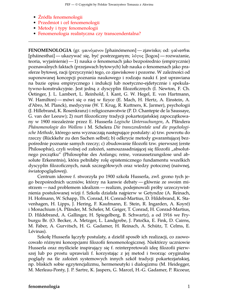 Fenomenologia - Polskie Towarzystwo Tomasza z Akwinu