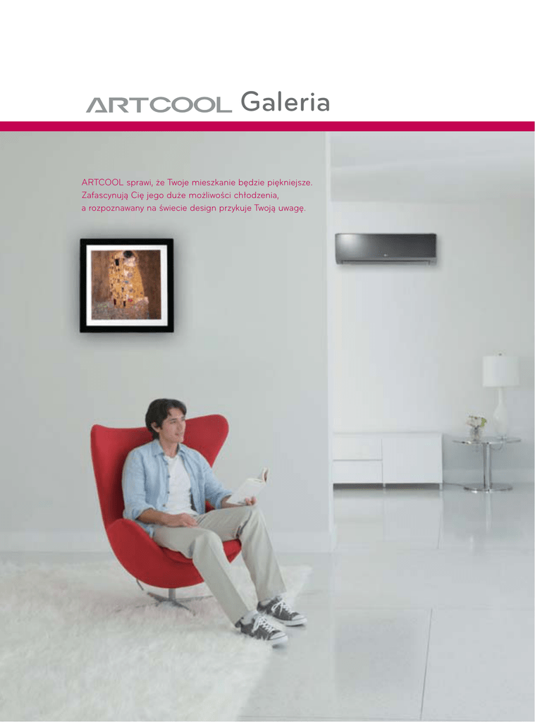 Galeria ARTCOOL sprawi, że Twoje mieszkanie będzie piękniejsze. Zafascynują Cię jego duże możliwości chłodzenia, a rozpoznawany na świecie design przykuje Twoją uwagę. KLIMATYZATORY LG 2011 _ P O K O J O W E POKOJOWE Unikalne cechy Możliwość wymiany zdjęcia ARTCOOL Nikt Ci już nie musi mówić, jak ma wyglądać Twój klimatyzator. Rewolucyjny ARTCOOL Galeria z możliwością wymiany zdjęcia umożliwia łatwą zmianę wyglądu klimatyzatora w każdej chwili, kiedy tylko zechcesz. Przykłady Libero Zmień wygląd klimatyzatora korzystając z własnej kolekcji zdjęć. Maestro Ścienny inverter Niski poziom hałasu Klimatyzatory LG należą do najcichszych na świecie. Zapewniają bardziej komfortowe i wyciszone środowisko spania oraz pomagają w koncentracji podczas pracy. Dla przykładu modele CA09/12AWR w trybie snu generują hałas na poziomie zaledwie 19dB. Dodatkowo poziom hałasu i drgań jednostki zewnętrznej uległ redukcji dzięki bardzo cichej pracy wentylatora i silnika jednostki zewnętrznej. 22dB Stabilizator Obrót wentylatora Ścienny Konwencjonalny Ukośny Stabilizator Obrót wentylatora Konwencjonalny LG Podczas obrotów wentylatora stabilizator i łopatki są położone równolegle (= kontakt w linii) Chwilowe zmiany ciśnienia są bardzo duże. Wymiary 19dB Podczas obrotów wentylatora stabilizator i łopatki nie są położone równolegle (= kontakt w punkcie) Chwilowe zmiany ciśnienia są niewielkie. Akcesoria 22 I 23 Galeria Kimatyzatory LG z serii ARTCOOL Galeria obsługiwane są przez użytkownika ergonomicznym pilotem bezprzewodowym, zapewniającym wygodną i intuicyną kontrolę urządzenia. Ergonomiczny pilot bezprzewodowy Bezprezwodowy pilot LG charakteryzuje się nowoczesnym i ergonomicznym design'em oraz łatwą i intuicyjną obsługą. Funkcje klimatyzatora zostały zobrazowane na podświetlanych przyciskach pilota łatwymi do rozpoznania grafikami. Duży wyświetlacz LCD Neo-Plasma Ustawianie temperatury Włączanie/wyłączanie Funkcje wyświetlacza Ustawianie kierunku nawiewu powietrza Funkcja Jet Cool Programowanie czasowe Temperatura w pomieszczeniu Energooszczędny tryb chłodzenia Poziom jasności wyświetlacza Automatyczne oczyszczanie KLIMATYZATORY LG 2011 _ P O K O J O W E Góra/Dół Prawo/Lewo POKOJOWE Unikalne cechy A09AW1 A12AW1 ARTCOOL • System oczyszczania powietrza NEO Plasma • Antykorozyjne złote lamele • Automatyczne oczyszczanie • Możliwość wymiany zdjęcia • 3-stronny wypływ powietrza • Ergonomiczny pilot bezprzewodowy Przykłady Libero Zmień wygląd klimatyzatora korzystając z własnej kolekcji zdjęć. Uwaga: wymiary jedn. wewn. i zewn. - patrz str. 40 Maestro Model 2.6~3.5kW JEDNOSTKA WEWNĘTRZNA JEDNOSTKA ZEWNĘTRZNA kW kW kW W W/W W/W kWh Ø / V / Hz m3/min m3/min dB(A)±3 dB(A)±3 dB(A) dB(A) °C °C A12AW1 NF2 A12AWU UF2 1.30~2.70~3.50 1.30~3.50~4.20 2.76 830/960 3.25 3.65 415 1 / 220-240 / 50 8 26 35 / 29 / 25 / 22 48 -5~43(46*) -10~24 Rotacyjna 24 43 3.8 / 4.4 4.5 / 5.2 C-15 3x1.0 4x1.0 1000 20 6.35(1/4) 9.52(3/8) 3/15 7 21.5 /16.0 660x660x146 770x545x245 15 34 1.30~3.50~4.00 1.30~4.20~5.00 3.32 1090/1160 3.21 3.62 545 1 / 220-240 / 50 10.5 34 39 / 32 / 25 / 23 48 -5~43(46*) -10~24 Rotacyjna 24 43 4.9 / 5.2 5.7 / 6.9 C-15 3x1.0 4x1.0 1000 20 6.35(1/4) 9.52(3/8) 3/15 7 21.5/16.0 660x660x145 770x540x245 15 34 Wymiary W W A A A A il.xmm2 il.xmm2 g g/m mm(cale) mm(cale) m m mm mm mm kg kg A09AW1 NF2 A09AWU UF2 Ścienny Wydajność chłodnicza Wydajność grzewcza Wydajność grzewcza w niskich temp.(-10ºC) Pobór mocy Chłodzenie/Grzanie EER COP Roczne zużycie energii Chłodzenie Zasilanie Przepływ powietrza Jedn. wewn., Max Jedn. zewn., Max Poziom hałasu Jedn. wewn.,Wys./Śr./Nis. Jedn. zewn., Max Poziom mocy akustycznej Jedn. wewn., Max Jedn. zewn., Max Zakres pracy Chłodzenie (Jedn. zewn.) Grzanie (Jedn. zewn.) Sprężarka Typ Wentylator (Jedn. wewn.) Moc wyjściowa silnika Wentylator (Jedn. zewn.) Moc wyjściowa silnika Prąd pracy Chłodzenie/Grzanie Prąd rozruchowy Chłodzenie/Grzanie Max natężenie prądu Chłodzenie/Grzanie Zabezpieczenie Przewody zasilania (do jedn. wewn.) Sterowanie i zasilanie Czynnik chłodniczy (dla 7,5 m) Dodatkowa ilość czynnika chłodniczego Przyłącza rur Ciecz Gaz Długość instalacji (Min./Max) Max różnica poziomów Rura skroplin (Jedn. zewn. / Jedn. wewn.) Wymiary Jedn. wewn. (dł.xwys.xszer.) Jedn. zewn. (dł.xwys.xszer.) Waga Jedn. wewn. Jedn. zewn. Ścienny inverter Specyfikacje Akcesoria Uwagi: 1. Wydajności mierzone w następujących warunkach: - chłodnicza przy parametrach: temp. wewn. 27°C suchy termometr / 19°C mokry termometr; temp. zewn. 35°C suchy termometr/24°C mokry termometr. - grzewcza przy parametrach: temp. wewn. 20°C suchy termometr / 15°C mokry termometr; temp. zewn. 7°C suchy termometr/6°C mokry termometr. 2. Roczne zużycie energii: w oparciu o średnią pracę urządzenia przez 500 godzin w roku przy nominalnym obciążeniu. 3. Wymiary i dane techniczne mogą ulec zmianie. * Zakres możliwy w przypadku pracy ciągłej. 24 I 25