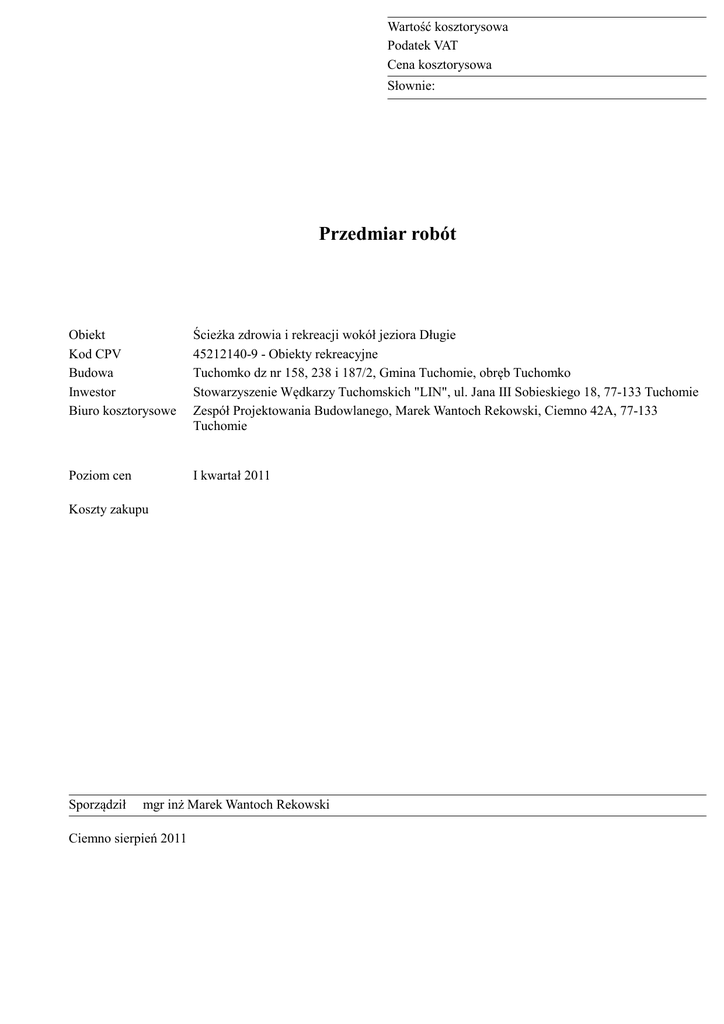 Przedmiar robót Jezioro Długie
