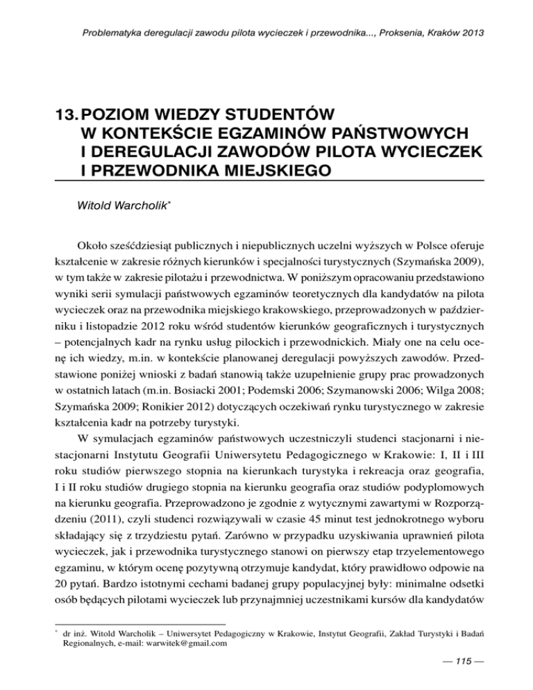 Problematyka deregulacji zawodu pilota i przewodnika 2013.indd