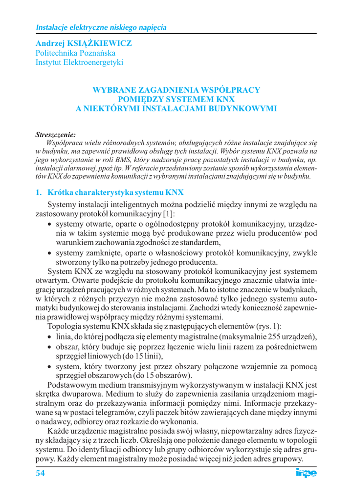 54 Andrzej KSIĄŻKIEWICZ Politechnika Poznańska Instytut