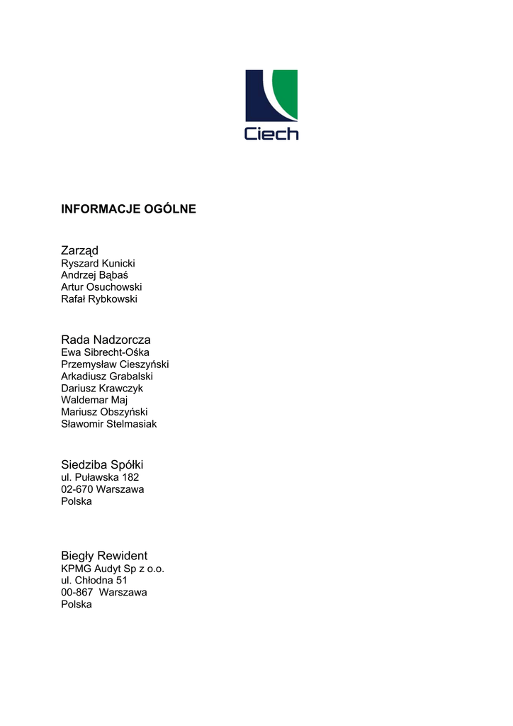 INFORMACJE OGÓLNE Zarząd Rada Nadzorcza Siedziba Spółki