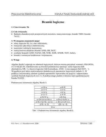 Bramki logiczne - Instytut Fizyki Doświadczalnej UG