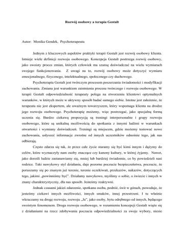 Rozwój osobowy a terapia Gestalt Autor: Monika Gendek