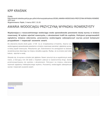 KPP KRAŚNIK AWARIA WODOCIĄGU PRZYCZYNĄ WYPADKU
