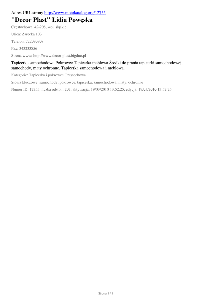 "Decor Plast" Lidia Poweska, Czestochowa, Zarecka 103