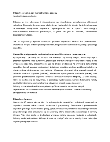 Odpady - problem czy marnotrawione zasoby Odpady, w tym