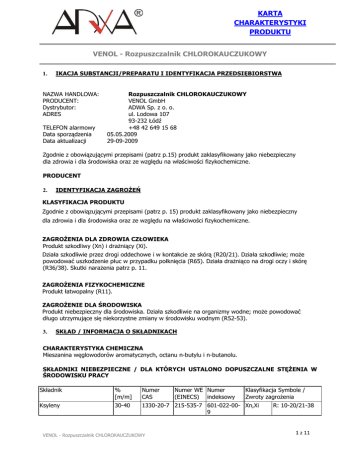 załoŜeniach i zalecanych środkach ostroŜności. Informacje zawarte w Karcie dotyczą wyłącznie