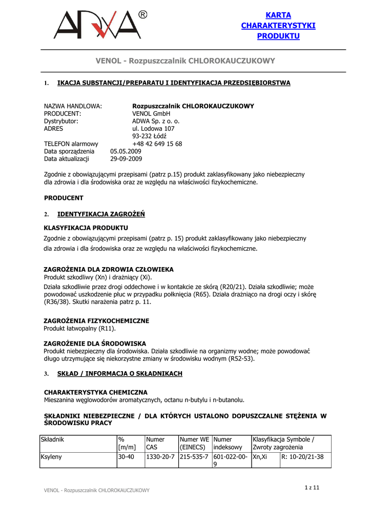 VENOL - Rozpuszczalnik CHLOROKAUCZUKOWY