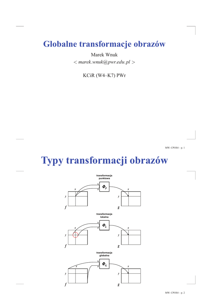 Typy transformacji obrazów
