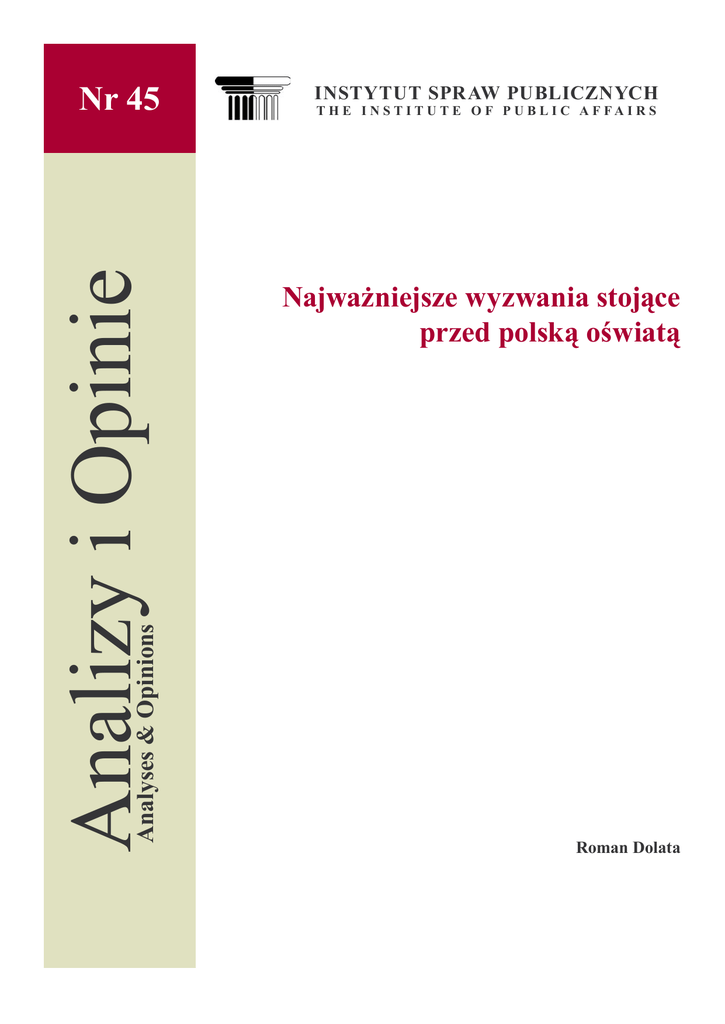 Analyses & Opinions Analizy i Opinie Nr 45 INSTYTUT SPRAW PUBLICZNYCH T H E I N S T I T U T E O F P U B L I C A F FA I R S Najważniejsze wyzwania stojące przed polską oświatą Roman Dolata Najważniejsze wyzwania stojące przed polską oświatą 2 Najważniejsze wyzwania stojące przed polską oświatą Roman Dolata • Polska oświata potrzebuje długofalowej i konsekwentnie realizowanej strategii rozwoju oświaty. • System oświaty skuteczniej niż dotychczas powinien łączyć zadania podtrzymywania spójności społecznej i tworzenia potencjału modernizacji kraju. • Reformy programowe powinny iść w parze z ewolucją szkoły w stronę instytucji autonomicznej i demokratycznej. Rocznicowy czas skłania do podsumowań i myślenia o przyszłości. Pierwszego września po raz szesnasty młodzi Polacy przekraczają próg szkół III Rzeczpospolitej. Co się zmieniło w polskiej oświacie? Dokąd zmierzamy? W ostatnich latach w polskim systemie oświaty wprowadzono liczne i gruntowne zmiany. Brakuje jednak długofalowej i konsekwentnie realizowanej strategii, niezależnej od zawirowań i zmian politycznych. Polska edukacja potrzebuje społecznej dyskusji. Edukacja w PRL P olski system oświaty w okresie PRL miał cechy charakterystyczne dla modelu radzieckiego ale też cechy swoiste. Można system ten opisać za pomocą czterech powiązanych z sobą charakterystyk: Instytut Spraw Publicznych 1. Silne upolitycznienie i zideologizowanie oświaty. Szkoła miała być głównym narzędziem tworzenia nowego człowieka - homo sovieticusa, który miał być podatny na sterowanie przez rozmyte i równocześnie wszechobecne struktury władzy. Analizy i Opinie, 45 Najważniejsze wyzwania stojące przed polską oświatą 3 Nowego człowieka mógł tworzyć tylko lojalny wobec komunistycznego państwa nauczyciel, stąd nacisk na ideologiczne kryteria selekcji zawodowej. Innym narzędziem tworzenia nowego człowieka były programy nauczania i podręczniki. Największej presji ideologicznej podlegały programy nauczania historii, języka polskiego i wiedzy o społeczeństwie, ale nawet w treści zadań z matematyki odnajdujemy próby indoktrynacji. 3. Silna centralizacja systemu oświaty. Analogicznie do gospodarki, oświata miała się stać dziedziną centralnie planowaną i kontrolowaną, stąd silna centralizacja struktury i rugowanie wszelkich autonomicznych instytucji niskiego szczebla. Między nauczycielem a komunistycznym państwem nie miało być żadnych pośrednich ogniw. Programy szkolne i podręczniki były w skali kraju ujednolicone. 2. System oświaty miał tworzyć i utrzymywać pożądaną strukturę społeczną. System miał zapewniać pożądane proporcje w liczebności poszczególnych grup społecznych, a zwłaszcza stworzyć i utrzymać liczną grupę wielkoprzemysłowej klasy robotniczej. Stąd rozbudowany segment szkół zasadniczych zawodowych. 4. Marginalna obecność w systemie szkolnictwa niepaństwowego. Niechęć do szkół niepaństwowych brała się z trzech powiązanych z sobą powodów: 1) z obawy przed utratą kontroli nad przekazem ideologicznym, 2) z negatywnego stosunku do prywatnej formy własności, 3) z resentymentu do szkolnictwa wyznaniowego – a on byłby w Polsce najsilniejszym elementem segmentu niepaństwowego. Zmiany w polskiej oświacie w okresie transformacji ustrojowej Z miany jakie zachodziły w polskim systemie oświaty w latach 19892005 można podzielić na dwie główne kategorie: odchodzenie od rozwiązań komunistycznych oraz modernizacja systemu. 2. Decentralizacja zarządzania i zmiana systemu finansowania oświaty. Przekazanie zarządzania oświatą gminom i powiatom zapoczątkowało proces wrastania szkół w swoje środowiska lokalne. Ten zamierzony wynik reformy oznacza jednak, że Odchodzenie od komunizmu. szkolnictwo coraz silniej uczestniczy w reprodukcji lokalnych warunków życia, może zatem przyczyniać się do pogłębiani nierówności terytorialnych. Można tutaj wskazać cztery ważne procesy: 1. Odpolitycznienie i osłabienie presji ideologicznej. Kryteria polityki kadrowej na poziomie szkoły przestały mieć uniformistyczny, polityczny charakter. Stworzono pluralistyczny, uwolniony od presji ideologii komunistycznej, rynek programów i podręczników szkolnych. Analizy i Opinie, 45 Z decentralizacją systemu edukacji wiąże się kluczowy proces instytucjonalizacji i autonomizacji szkoły. Szkoła powoli przestaje być tylko korporacją nauczycieli realizujących politykę oświatową centrum, a staje się niezależną instytucją o własnej kulturze. Choć jesteśmy raczej na początku drogi, to Instytut Spraw Publicznych Najważniejsze wyzwania stojące przed polską oświatą 4 jednak scentralizowany system powoli przeobraża się w zdecentralizowaną sieć autonomicznych szkół, silnie związanych ze swoim lokalnym środowiskiem. pierwszego progu o dwa lata przedstawiano jako zabieg modernizacyjny, wydaje się, że jest to raczej efekt presji zewnętrznych procesów różnicowania się i rozwarstwiania społeczeństwa. 3. Zmiana struktury szkolnictwa średniego to Badania wykazują, że gimnazja przyczyniają się kolejny proces przezwyciężania spuścizny PRL. do nasilającej się segregacji społecznej w oświacie Podczas gdy jeszcze w roku szkolnym 1985/86 publicznej. ponad 50% uczniów uczęszczało do zasadniczych 2. Reforma programowa. Najważniejszym szkół zawodowych, w roku 2003/04 już tylko zadaniem w tym zakresie było opracowanie niecałe 20%. Narodowy Spis Powszechny 2002 podstawy programowej, która z jednej strony wykazał, że w perspektywie 1988-2002 dokonała miała być zwornikiem pluralistycznego się rewolucja edukacyjna związana ze zmianą rynku programów, z drugiej strony miała dać struktury wykształcenia. Procent kobiet z sygnał do unowocześnienia treści kształcenia wyższym wykształcenie wzrósł z 5,9% do 10,4%, i metod nauczania. Podstawa programowa nie z wykształceniem ś