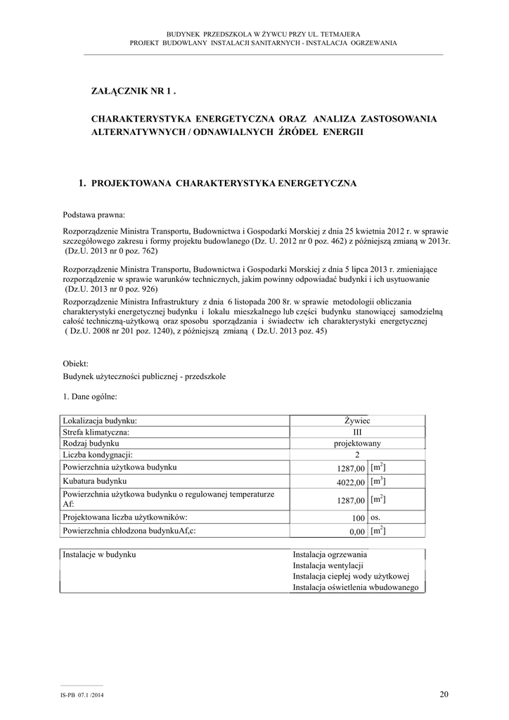 załącznik nr 1 . charakterystyka energetyczna oraz