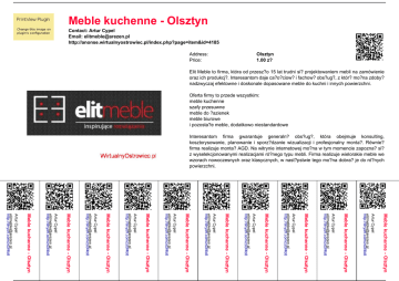 Meble kuchenne - Olsztyn Contact: Artur Cypel Email: [email protected] http://anonse.wirtualnyostrowiec.pl/index.php?page=item&id=4185 Address: Price: Olsztyn 1.00 z? Elit Meble to firma, która od przesz?o 15 lat trudni si? projektowaniem mebli na zamówienie oraz ich produkcj?. Interesantom daje ca?o?ciow? i fachow? obs?ug?, z któr? mo?na zdoby? nadzwyczaj efektowne i doskonale dopasowane meble do kuchni i innych powierzchni. Oferta firmy to przede wszystkim: meble kuchenne szafy przesuwne meble do ?azienek meble biurowe i pozosta?e meble, dodatkowo niestandardowe Interesantom firma gwarantuje generaln? obs?ug?, która obejmuje konsulting, kosztorysowanie, planowanie i sporz?dzanie wizualizacji i profesjonalny monta?. Równie? firma realizuje monta? AGD. Na witrynie internetowej mo?na w tym momencie zapozna? si? z wyselekcjonowanymi realizacjami ró?nego typu mebli. Firma realizuje wielorakie meble we wzorach nowoczesnych oraz klasycznych, w nast?pstwie tego mo?na dobra? je do ró?nych powierzchni. Meble kuchenne - Olsztyn Artur Cypel [email protected] http://tinyurl.com/zs3f4b8 Meble kuchenne - Olsztyn Artur Cypel [email protected] http://tinyurl.com/zs3f4b8 Meble kuchenne - Olsztyn Artur Cypel [email protected] http://tinyurl.com/zs3f4b8 Meble kuchenne - Olsztyn Artur Cypel [email protected] http://tinyurl.com/zs3f4b8 Meble kuchenne - Olsztyn Artur Cypel [email protected] http://tinyurl.com/zs3f4b8 Meble kuchenne - Olsztyn Artur Cypel [email protected] http://tinyurl.com/zs3f4b8 Meble kuchenne - Olsztyn Artur Cypel [email protected] http://tinyurl.com/zs3f4b8 Meble kuchenne - Olsztyn Artur Cypel [email protected] http://tinyurl.com/zs3f4b8 Meble kuchenne - Olsztyn Artur Cypel [email protected] http://tinyurl.com/zs3f4b8 Meble kuchenne - Olsztyn Artur Cypel [email protected] http://tinyurl.com/zs3f4b8 Powered by TCPDF (www.tcpdf.org)