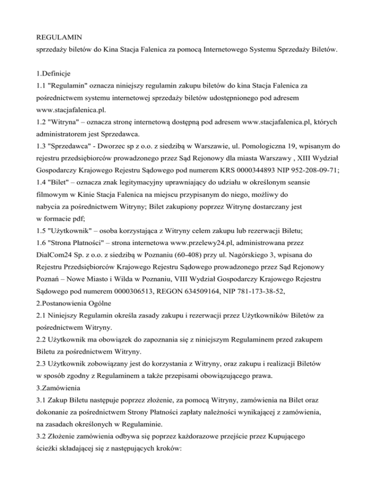 REGULAMIN sprzedaży biletów do Kina Stacja Falenica za pomocą
