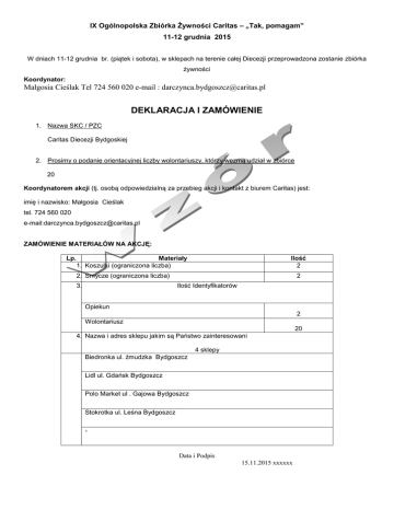 deklaracja i zamówienie - Caritas Diecezji Bydgoskiej
