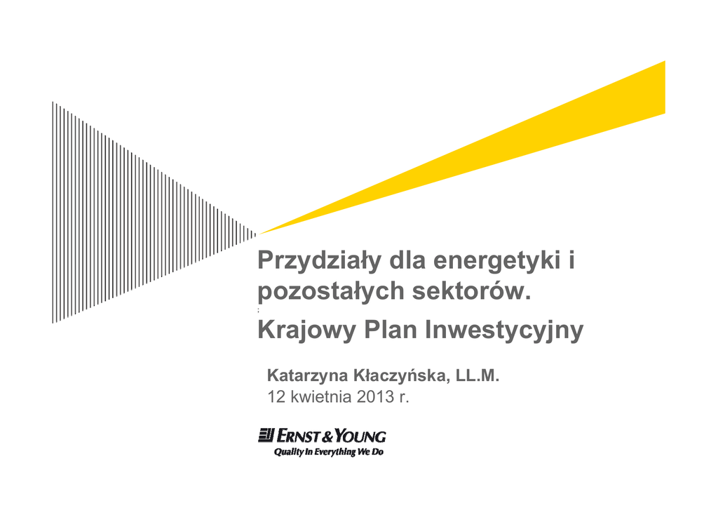 Przydziały dla energetyki i pozostałych sektorów. ; Krajowy Plan Inwestycyjny Katarzyna Kłaczyńska, LL.M. 12 kwietnia 2013 r. Nowe zasady przydziału uprawnień ► Przydziały dla energetyki: ► ► ► ► ► Przydzielane zgodnie z art. 10c Dyrektywy ETS Na zasadzie wyjątku (tzw. derogacji) od konieczności pełnego zakupu Wymagają zatwierdzenia przez Komisję Europejską Stanowiące rekompensatę za podejmowanie inwestycji Przydziały dla pozostałych sektorów: ► ► ► ► Page 2 Przydzielane zgodnie z art. 10a Dyrektywy ETS Według scentralizowanych zasad na poziomie UE Instalacje i propozycje przydziałów zgłaszane przez państwa członkowskie w ramach tzw. Krajowych Środków Wykonawczych Preferencje dla sektorów narażonych na ucieczkę emisji i producentów ciepła dla gospodarstw domowych Derogacja dla energetyki ► Czy Polska otrzyma nieodpłatne przydziały dla energetyki? ► ► ► ► ► Wniosek derogacyjny złożony w terminie (30.09.2011) Komisja wydała warunkową decyzję 13.07.2012 Polska w odpowiedzi złożyła poprawiony wniosek Sprawa nadal oczekuje na rozstrzygnięcie Mechanizm darmowych przydziałów ► ► ► ► ► Page 3 Przyznawane dla energetyki zawodowej Kwalifikujące się instalacje: istniejące na koniec 2008 r. i te których „proces inwestycyjny” fizycznie wszczęto do tego momentu Przyznawane od (teoretycznie) 2013 r. i malejące do 2019 r. Podlegające reżimowi pomocy publicznej Stanowiące w istocie rekompensatę za realizowane inwestycje Krajowy Plan Inwestycyjny ► Jakie inwestycje? ► ► ► ► ► Wpływające bezpośrednio (redukcja emisji) lub pośrednio (zwiększenie efektywności) na ochronę klimatu zgodnie z tzw. wskaźnikami zgodności Podjęte od 25.06.2009 Zgłoszone do Komisji w ramach wniosku derogacyjnego i przez KE zaakceptowane Zasadniczo mogą także dotyczyć budowy nowych jednostek wytwórczych opalanych węglem Jak rozliczane? ► ► ► Page 4 Polska zgłosiła model „ex post”: najpierw poniesienie nakładów, później uprawnienia Nakłady bilansowane z uprawnieniami w systemie 0-1: konieczność zgromadzenia całości nakładów potrzebnych do odebrania równoważnych uprawnień Uzupełniająco mechanizm roll-over: uprawnienia będą mogły być bankowane (np. na 4 lata) do zebrania puli nakładów Krajowy Plan Inwestycyjny, c.d. ► Skąd pozyskać nakłady inwestycyjne? ► ► ► Które nakłady będą kwalifikowane? ► ► ► ► Możliwość bilansowania nakładów i uprawnień w ramach grup kapitałowych Możliwość zakupu obligacji państwowych (założenia na dziś nieznane) Wszelkie związane z inwestycją (także usługi doradcze etc.) Odpowiednio udokumentowane (standard dowodu księgowego?) Zatwierdzone przez organ powołany do monitorowania i egzekucji KPI (być może GINB i GIOŚ) Co z inwestycjami realizowanymi teraz lub już zakończonymi? ► ► Page 5 Brak procedur nie zwalnia z prowadzenia starannej inwentaryzacji i ewidencji nakładów Po wejściu w życie nowe przepisy mogą dawać mało czasu na ich zatwierdzenie Przydziały dla pozostałych sektorów ► Kiedy można się spodziewać przydziałów? ► ► ► ► ► Czy można prognozować wysokość alokacji na podstawie danych zgłoszonych w KŚW? ► ► Polska złożyła KŚW jako jeden z nielicznych krajów w terminie Do 28 lutego uprawnienia powinny były wpłynąć na rachunki 7 marca Sąd Unii Europejskiej oddalił zarzuty Polski w sprawie tzw. decyzji benchmarkowej, która mogła rzutować na przydziały Do 30 kwietnia konieczność rozliczenia emisji: czy jest to gra na zwyżkę cen? Niepewność co do wysokości międzysektorowego współczynnika korygującego Czy pojawiają się problemy z określenie przydziałów na podstawie KŚW? ► ► Page 6 Nieformalne konsultacje pomiędzy Komisją Europejską a władzami państw członkowskich W ich wyniku prowadzący instalacje czasem wzywani do korekt Źródła prawa dla instalacji objętych art. 10a Page 7 Zmiany w produkcji i nowe instalacje a EU ETS ► Restrykcyjne podejście do wpływu zmian w produkcji na darmowe alokacje ► ► Nowe instalacje i rozbudowy będą korzystały z uprawnień z ogólnoeuropejskiej rezerwy ► ► ► Konieczność zderzania zamierzeń biznesowych z regulacjami klimatycznymi, zwłaszcza tam gdzie planuje się optymalizacje produkcji Rozdzielana na zasadzie „kto pierwszy ten lepszy” Możliwość wprowadzenia systemu kolejkowego – czy będzie działał wstecz? Istotna dysproporcja pomiędzy okolicznościami uprawniającymi do dodatkowych przydziałów a tymi skutkującymi zmniejszeniem istniejących Page 8 Zmiany w zdolności produkcyjnej i produkcji ► Znaczące zwiększenie / zmniejszenie zdolności produkcyjnych: ► ► ► ► Konieczna zmiana fizyczna w obrębie instalacji Skutkująca możliwością działania z mocą 10% większą lub zwiększonym o 50 tys. uprawnień zapotrzebowaniem na alokację (reprezentującym 5% wyjściowego przydziału) Przekłada się na odpowiednio skorygowane przydziały (w górę lub w dół) Brak symetrii w konsekwencjach zmniejszania / zwiększania produkcji bez różnic w zdolności produkcyjnej ► ► Page 9 Zmniejszenie produkcji o min. 50% = zmniejszenie przydziałów; zwiększenie produkcji ≠ zwiększenie przydziałów Kwalifikowane progi: 50-75%; 75-90%; powyżej 90% brak uprawnień Uprawnienia na produkcję ciepła ► Nowe zasady przydziału dla producentów ciepła: ► ► ► Preferencyjne zasady przydziału przy eksporcie ciepła do instalacji zagrożonych carbon leakage i gospodarstw domowych ► ► Kiedy ciepło jest eksportowane do instalacji objętej EU ETS ciepło otrzymuje odbiorca W przypadku eksportu ciepła do instalacji spoza EU ETS, gospodarstw domowych i dystrybutora ciepło otrzymuje producent W praktyce konieczność dokonywania skomplikowanych podziałów instalacji na wirtualne „podinstalacje” Niejasności co do stosowania reguł dot. zwiększ