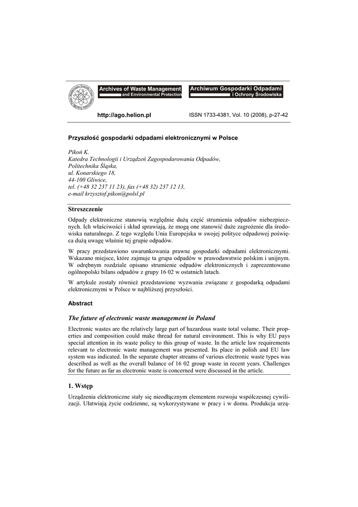 Streszczenie The future of electronic waste management in Poland