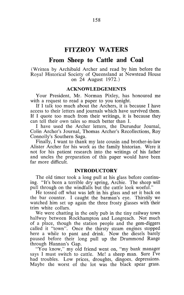 FITZROY WATERS From Sheep to Cattle and Coal - Brisbane