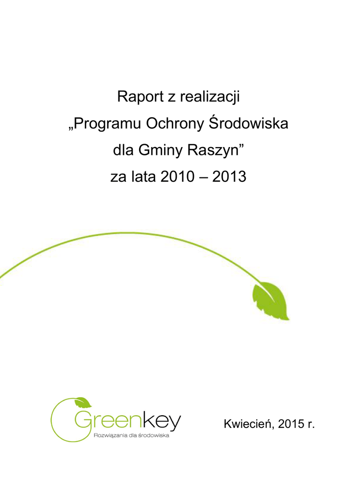 Raport z realizacji „Programu Ochrony Środowiska dla Gminy Raszyn” za lata 2010 – 2013 Kwiecień, 2015 r. Zamawiający: Gmina Raszyn Urząd Gminy Raszyn ul. Szkolna 2a 05 – 090 Raszyn Wykonawca: Green Key Joanna Masiota - Tomaszewska ul. Nowy Świat 10a/15 60 - 583 Poznań www.greenkey.pl Raport z realizacji „Programu Ochrony Środowiska dla Gminy Raszyn” za lata 2010 - 2013 Właściciel Firmy mgr Joanna Masiota - Tomaszewska Kierownik projektu: mgr Joanna Walkowiak Autorzy opracowania: mgr Joanna Walkowiak Monika Krajniak Kwiecień, 2015 r. Raport z realizacji Programu Ochrony Środowiska dla Gminy Raszyn za lata 2010 - 2013 Green Key SPIS TREŚCI 1. WSTĘP .................................................................................................................... 4 2. OCENA REALIZACJI PRZEDSIĘWZIĘĆ Z ZAKRESU PLANU OPERACYJNEGO PROGRAMU OCHRONY ŚRODOWISKA W OKRESIE OD STYCZNIA 2010 R. DO GRUDNIA 2013 R. .................................................................................................. 6 2.1. 2.2. 2.3. 2.4. 2.5. 2.6. 2.7. 2.8. 2.9. Realizacja celu I Poprawa i ochrona jakości wód powierzchniowych i podziemnych na terenie Gminy Raszyn oraz Cel VIII oszczędne gospodarowanie zasobami wody ................................................................................................................................ .6 Realizacja celu II uporządkowanie gospodarki odpadami na terenie Gminy Raszyn .............................................................................................................................. .11 Realizacja celu III poprawa jakości powietrza atmosferycznego i ochrona przed hałasem komunikacyjnym, zwłaszcza na obszarach gęstej zabudowy mieszkaniowej na terenie Gminy Raszyn ....................................................................................... 12 Realizacja celu IV Ochrona ludności przed oddziaływaniem promieniowania elektromagnetycznego ........................................................................................... 17 Realizacja celu V zapobieganie poważnym awariom i zagrożeniom naturalnym środowiska oraz eliminacja i minimalizacja ich skutków w razie ich wystąpienia .... 17 Realizacja celu VI ochrona i rozwój walorów przyrodniczych na terenie Gminy Raszyn oraz celu VII ochrona obszarów i obiektów przyrodniczo cennych na terenie Gminy Raszyn ........................................................................................................ 19 Realizacja celu IX rozpoznanie możliwości i wykorzystania odnawialnych źródeł energii na terenie Gminy Raszyn ........................................................................... 19 Realizacja celu X rozwój edukacji ekologicznej ...................................................... 20 Realizacja celu XI Wprowadzenie zarządzania środowiskowego ........................... 22 3. OCENA REALIZACJI PROGRAMU OCHRONY ŚRODOWISKA NA PODSTAWIE WSKAŹNIKÓW MONITOROWANIA PROGRAMU ................................................24 4. PODSUMOWANIE I WNIOSKI ...............................................................................31 SPIS TABEL ...................................................................................................................35 WYKORZYSTANE MATERIAŁY I OPRACOWANIA ......................................................35 3 Raport z realizacji Programu Ochrony Środowiska dla Gminy Raszyn za lata 2010- 2013 1. Green Key WSTĘP Niniejszy Raport odnosi się do opracowanego w 2007 roku „Programu Ochrony Środowiska dla Gminy Raszyn na lata 2007 – 2015”. „Programu Ochrony Środowiska” został aktualizowany w 2011 r. (uchwała Nr V/32/11 Rady Gminy Raszyn z dania 24 lutego 2011 r. w sprawie przyjęcia Programu Ochrony Środowiska dla Gminy Raszyn na lata 2010 – 2013 z perspektywą do 2017 r.). Zgodnie z art. 18 ust. 2 ustawy z dnia 27 kwietnia 2001 r. Prawo ochrony środowiska (Dz. U. 2013 poz. 1232 ze zm.) organ wykonawczy Gminy sporządza co dwa lata raport z realizacji programu ochrony środowiska (zwany dalej Raportem), który przedstawia Radzie Gminy Raszyn. Niniejszy dokument stanowi realizację obowiązku, o którym mowa powyżej. Zgodnie z ustawą z dnia 3 października 2008 r. o udostępnianiu informacji o środowisku i jego ochronie, udziale społeczeństwa w ochronie środowiska oraz ocenach oddziaływania na środowisko (Dz. U. 2013 poz. 1235, art. 25), Wójt Gminy Raszyn ma obowiązek zamieścić w Biuletynie Informacji Publicznej opracowany Raport z realizacji Programu ochrony środowiska, tak aby każdy mieszkaniec mógł zweryfikować stopień realizacji zamierzeń Gminy w zakresie ochrony środowiska. Ustawodawca nie określił, jaką formę powinien posiadać Raport z realizacji Programu i jakie elementy mają składać się na jego zawartość. Nie zostały opracowane ogólne wytyczne opracowania Raportu, umożliwiające zachowanie układu treści i sposobu przedstawienia rezultatów z realizacji zadań ujętych w Programie Ochrony Środowiska obowiązujące we wszystkich jednostkach samorządu terytorialnego w Polsce. Ustawodawca nie zdyscyplinował również samorządów do przestrzegania określonych terminów, w których – od momentu przyjęcia uchwałą Programu Ochrony Środowiska – powinien być przedstawiony Raport z jego realizacji. Zakres niezbędnych informacji jakie powinien zawierać Raport powinien odpowiadać treści przyjętego POŚ. W Raporcie należy zatem przedstawić postępy z realizacji każdego z zadań zapisanych w Programie lub wyjaśnić powody zaniechania działań lub ewentualnych opóźnień. Porównanie uzyskanego obrazu ze stanem polityki ochrony środowiska opisanym w Programie Ochrony Środowiska powinno dać odpowiedź na pytanie, w jakim stopniu udało się zrealizować przedsięwzięcia przyjęte w Programie. Chodzi tu o wszystkie zadania zapisane w POŚ, te realizowane bezpośrednio przez samorząd gminy, jak i wszystkie inne podmi
