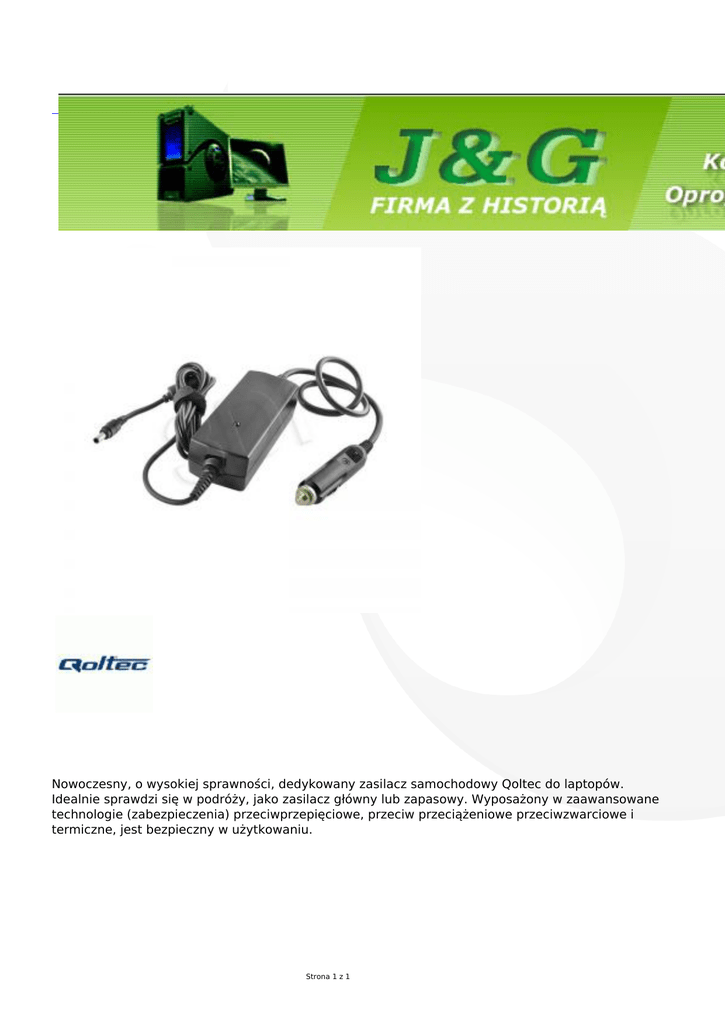 Nowoczesny, o wysokiej sprawności, dedykowany zasilacz samochodowy Qoltec do laptopów. Idealnie sprawdzi się w podróży, jako zasilacz główny lub zapasowy. Wyposażony w zaawansowane technologie (zabezpieczenia) przeciwprzepięciowe, przeciw przeciążeniowe przeciwzwarciowe i termiczne, jest bezpieczny w użytkowaniu. Strona 1 z 1