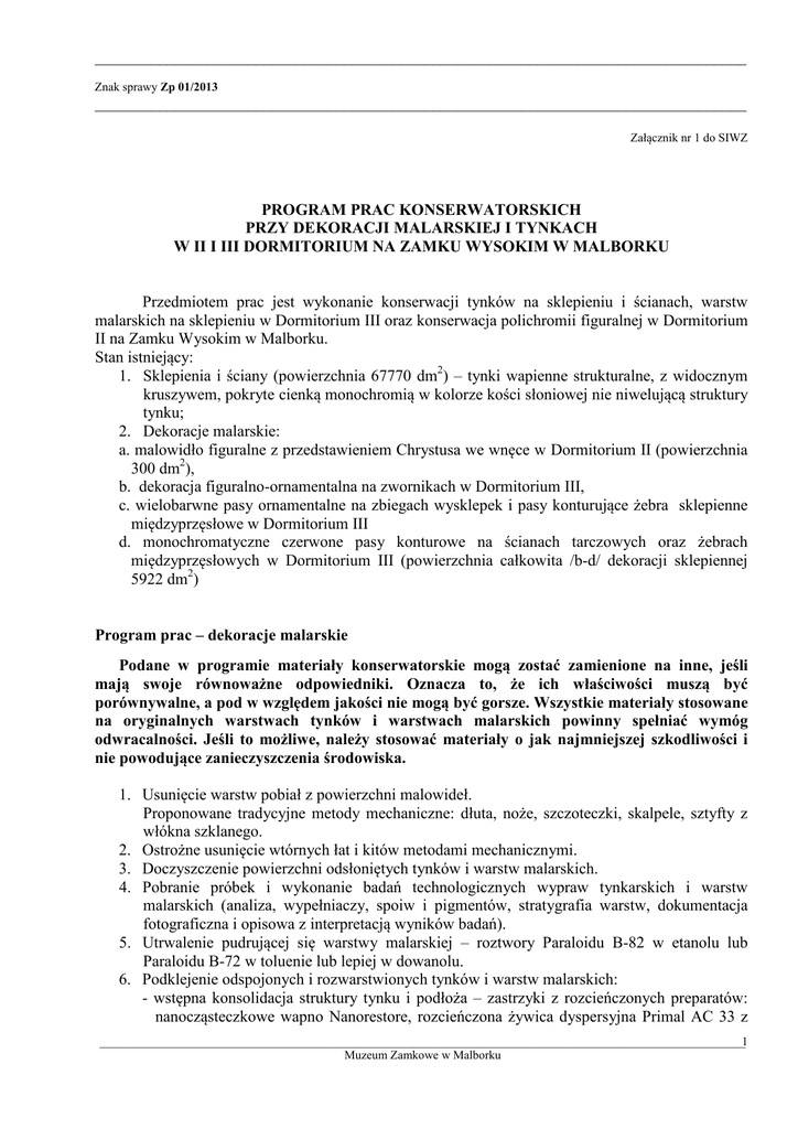 Znak sprawy Zp 01/2013 - Muzeum Zamkowe w Malborku