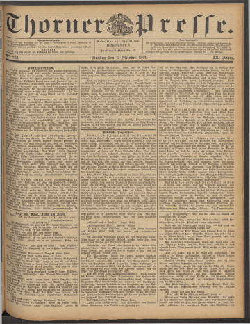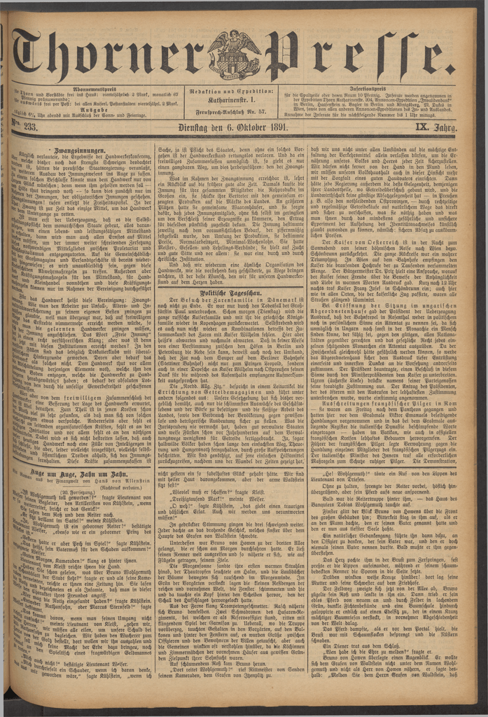 l. 233. Dienstag den 6. Oktober 1891. IX. Zahrg.