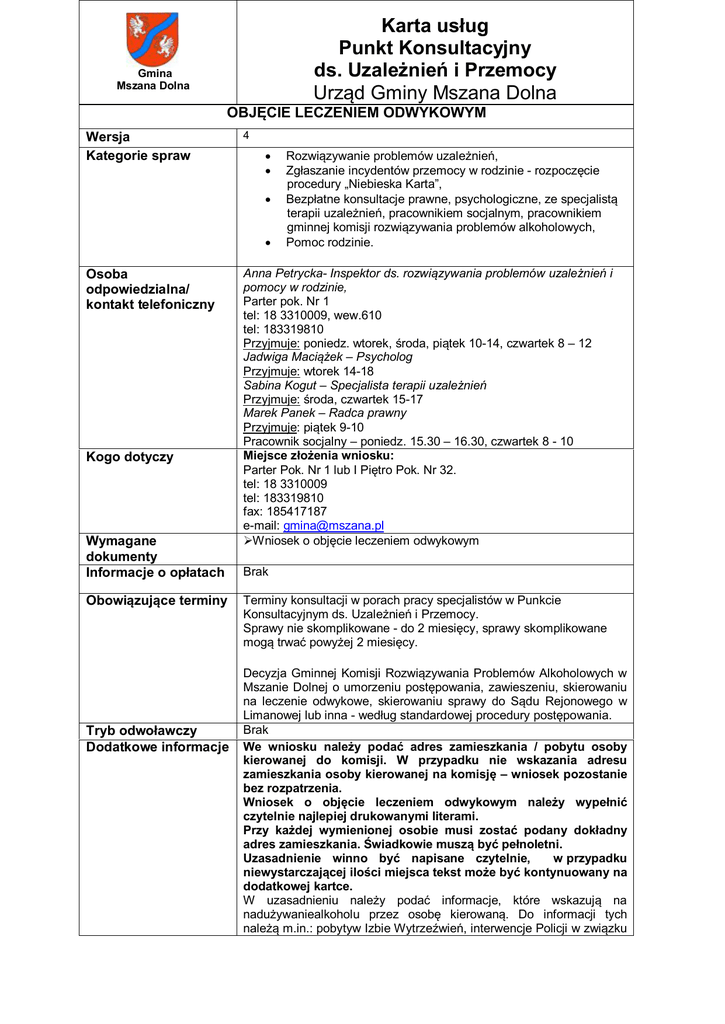 Karta usług Punkt Konsultacyjny ds. Uzależnień i Przemocy Urząd