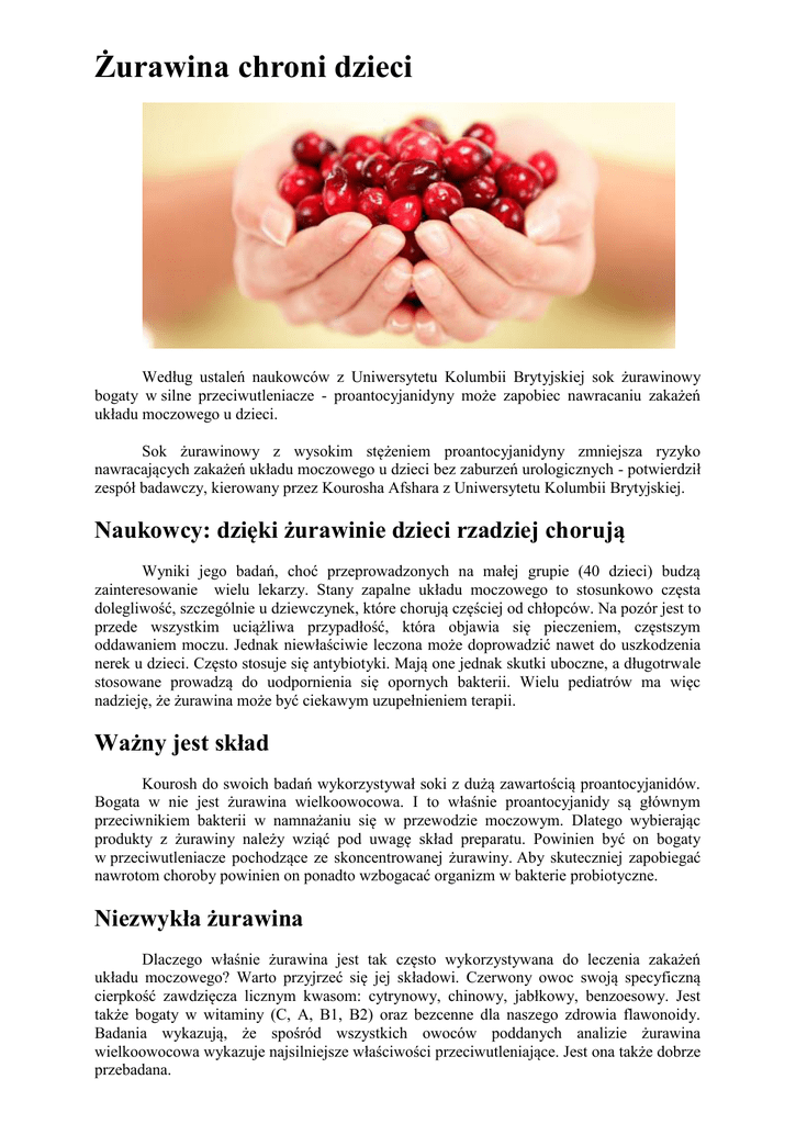 Żurawina chroni dzieci