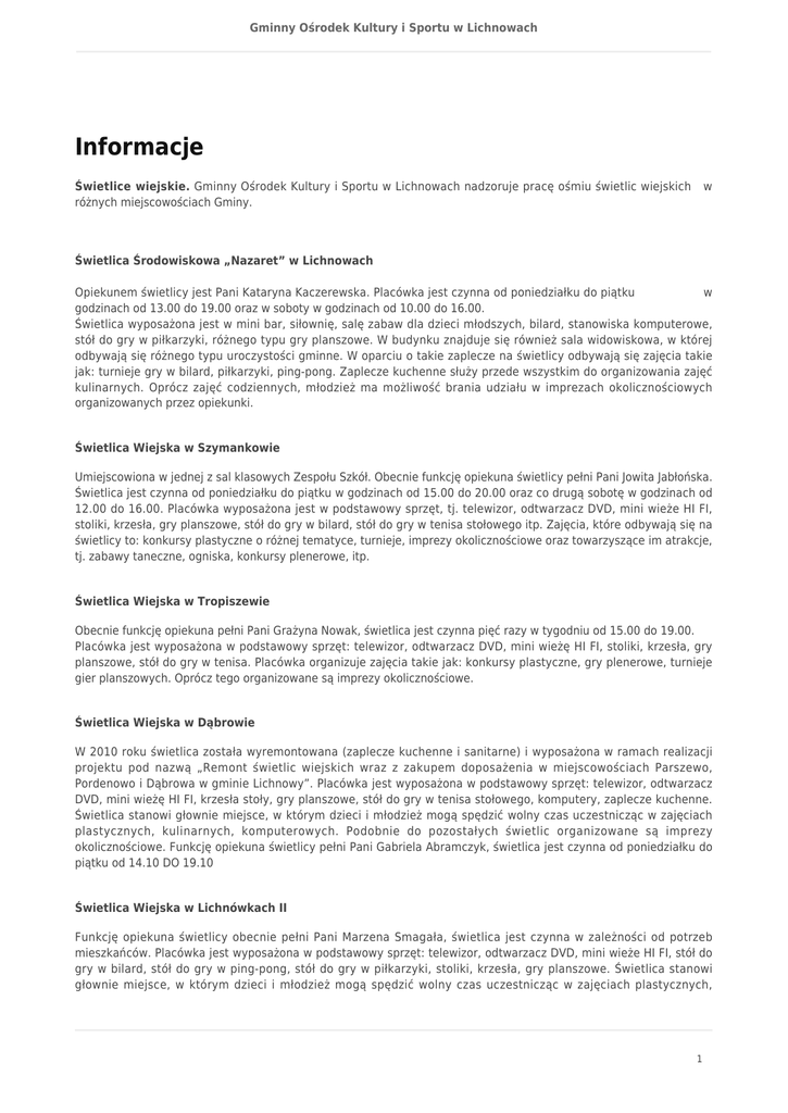 Informacje - Gminny Ośrodek Kultury i Sportu w Lichnowach