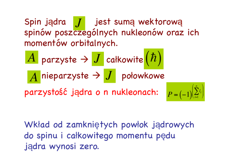 - Jądro początkowe i końcowe mają te same liczby kwantowe