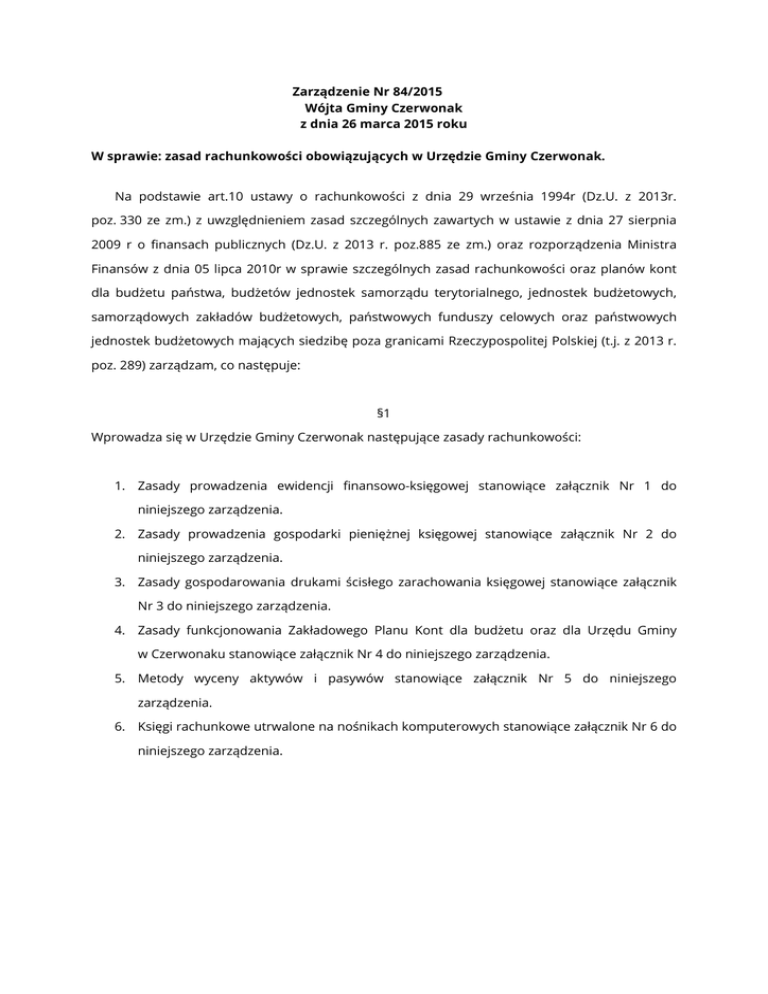 84-2015 polityka rachunkowości - BIP Czerwonak