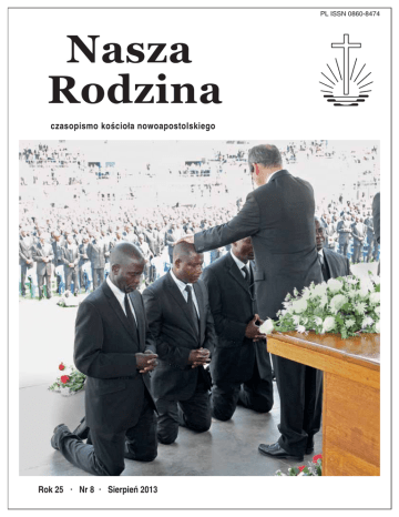 PL ISSN 0860-8474 Nasza Rodzina czasopismo kościoła nowoapostolskiego Rok 25 · Nr 8 · Sierpień 2013 S Ł O W O W S T Ę P N E Wielbić Boga Ojca W arcykapłańskiej modlitwie Jezus prosił swego Ojca: „Ja cię uwielbiłem na ziemi; dokonałem dzieła, które mi zleciłeś, abym je wykonał”. Poniekąd jest to podsumowanie życia Jezusa Chrystusa. Jezus koncentrował się na swoim Ojcu i na woli swego Ojca. W jaki sposób wielbił Ojca? Przypomnijmy sobie określone i szczególne wydarzenia. Na ich podstawie możemy powiedzieć, że Pan Jezus wielbił swego Ojca. Pomyślmy o kuszeniu na pustyni, kiedy przeciwstawił się diabłu. Albo pomyślmy o ofierze, którą złożył, oddając swoje życie za ludzkość. Zatem wielbił Boga swoimi szczególnymi czynami. Wypowiadając słowa arcykapłańskiej modlitwy zapewne miał na uwadze nie tylko swoje doniosłe czyny, ale też wszystkie małe. Kiedy Pan Jezus wielbił swego Ojca w małych sprawach? Na ten temat znajdziemy w Biblii niejedną relację. Będąc dwunastoletnim chłopcem, kiedy to szukali Go rodzice i w końcu znaleźli w świątyni, wtedy powiedział: „Czyż nie wiedzieliście, że w tym, co jest Ojca mego, Ja być muszę?”. Uwielbił swojego Ojca podjętą decyzją: Ja muszę być w domu Bożym. My również możemy tak czynić. My również w ten sposób możemy wielbić Boga Ojca. Gdy Jezus wielbił swego Ojca, to On z kolei był też wielbiony przez Boga; przeżył zmartwychwstanie i wniebowstąpienie. To były skutki Jego wielbienia Boga. Jeżeli dziś wszystkimi naszymi możliwościami będziemy wielbili Boga, to Pan Jezus i Jego Ojciec także nas uwielbią w tym momencie, kiedy opuścimy ziemię i na wieki będziemy mogli być z Nimi. Zatem ważne jest, żebyśmy wielbili naszego Ojca Niebieskiego i Jego Syna tak dobrze, jak tylko potrafimy. Powróćmy do zagadnienia: Jak możemy wielbić Boga? Możemy to czynić w małych sprawach. Nie muszą to być zawsze wielkie dzieła albo czyny graniczące z cudem. Jak Jezus, tak i my możemy dążyć do tego, aby tak często, jak to możliwe, być blisko Boga. To może się dziać poprzez nasze uczestniczenie w nabożeństwach lub nasze modlitwy. W ten sposób wielbimy naszego Ojca Niebieskiego. Zwróćmy uwagę na inną okoliczność, w której Pan Jezus w małej sprawie wielbił swego Ojca. Pewnego razu ktoś przyszedł do niego i zapytał: „Nauczycielu dobry! Co mam czynić, aby odziedziczyć żywot wieczny?”. Zwrot „Nauczycielu dobry” skłonił Jezusa do odpowiedzi: „Czemu mię nazywasz dobrym? Nikt nie jest dobry, tylko jeden Bóg”. Nie chciał być wielbiony, ale we wszystkim, i w tym co małe, oddawał cześć Bogu. Czy nie możemy też tak czynić? Jeżeli przeżywamy coś cudownego, wielkiego, jeżeli doświadczamy pomocy Bożej, wtedy nie myślmy, że na to zasłużyliśmy. Przeciwnie, spójrzmy ku niebu i powiedzmy: To jest dzieło Boże. On daje nam swoją pomoc i swoje wsparcie. Przyjrzyjmy się kolejnemu wydarzeniu. Pewna kobieta została przyprowadzona do Pana Jezusa, ponieważ dopuściła się cudzołóstwa. Ludzie ją oskarżali, a co uczynił Pan Jezus? Odpuścił jej grzechy. W ten sposób uwielbił swego Ojca, że udzielił łaski. Czyńmy podobnie. Także mamy niejedne trudności. Istnieją problemy w zborze, w rodzinie, występują nieporozumienia. Wciąż na nowo doświadczamy, że życie nie jest takie proste. Boga wielbimy jednak zawsze wtedy, gdy wykazujemy gotowość do przebaczania. Gdy Pan Jezus przybył do świątyni i widział, że ludzie tam parali się handlem, to był oburzony i wyrzucił stamtąd handlarzy i wekslarzy, którzy bezcześcili świątynię Bożą dla własnych celów. W tym momencie również uwielbił swego Ojca. Uzmysłowił ludziom, że nie przystoi, aby ze świątyni Boga robić zwykłe targowisko, „jaskinię zbójców”, chociaż odpowiadało to tradycji żydowskiej, aby dbać o to, żeby żadne pogańskie pieniądze nie trafiły do skarbca; musiały być więc wymienione. Świątynia Boża jest święta i niech też świętą pozostanie. Nie pozwalajmy żadnemu duchowi burzyć tej świętości w naszych sercach. Wielbmy Boga poprzez to, że wszystko, co się dzieje w domu Bożym i co jest związane z nabożeństwami, zachowujemy jako święte. Czasami budzą się w sercu myśli skierowane przeciwko świętości Bożej. Na przykład, kiedy nie jesteśmy zadowoleni z prowadzenia Bożego albo kiedy chcielibyśmy przeforsować nasze zapatrywania i mniemania. To byłyby takie „stoły” w naszym sercu, które musimy przewrócić i wyrzucić, aby świętość ponownie wstąpiła do naszego serca. Widzimy więc, że wielbienie Boga jest pracą, którą należy wykonywać dzień w dzień. Wielbmy Boga w ten sposób, że na nabożeństwach i w modlitwach będziemy szukać ścisłej społeczności z Bogiem i Jego Synem. Bądźmy zawsze gotowi do przebaczania i zachowujmy jako święte to, co w naszych sercach jest święte. Niech naszym codziennym zadaniem będzie wielbienie Ojca Niebieskiego w małych i codziennych sprawach. (Z nabożeństwa Głównego Apostoła Jean-Luca Schneidera) 2 N A B O Ż E Ń S T W O Muzyczne powitanie gości zza oceanu Główny Apostoł Schneider (pośrodku) z apostołem Mbutą (z lewej) i tłumaczem Na niedzielę 9 czerwca 2013 roku w Luandzie został wynajęty stadion, aby umożliwić braciom i siostrom z miasta i okolic uczestnictwo w nabożeństwie Głównego Apostoła. Na tej uroczystości Główny Apostoł ustanowił czterech apostołów i trzech biskupów. Główny Apostoł Jean-Luc Schneider w Angoli Apostoł okręgowy Brinkmann, z okazji pierwszej wizyty Głównego Apostoła Schneidera w Angoli, zaprosił do Luandy wszystkich apostołów i biskupów ze swego portugalskojęzycznego obszaru działania. W sobotę 8 czerwca przed południem w programie było nabożeństwo dla sług. Główny Apostoł w swojej służbie podkreślił konieczność pracowania i działania w duchu C