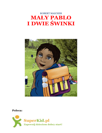 ROBERT MAICHER MAŁY PABLO I DWIE ŚWINKI Poleca: SuperKid.pl Zapewnij dzieciom dobry start! © Copyright by Robert Maicher Data: 03.02.2008 Tytuł: Mały Pablo i dwie świnki Autor: Robert Maicher Wydanie I Seria: Edukacja finansowa dla dzieci. Ilustracje: PolaGreg Skład: Robert Maicher Robert Maicher WWW: www. robertmaicher.pl EMAIL: [email protected] Wszelkie prawa zastrzeŜone. All rights reserved. Bajka ma charakter edukacyjny i jest pierwszą z serii dziesięciu bajek. W swoim założeniu mają one pomóc rodzicom w edukacji finansowej dziecka, która powinna stać się ważnym elementem wychowania każdego młodego człowieka. Ponieważ ten rodzaj edukacji jest pomijany w szkołach, na rodzicu spoczywa odpowiedzialność za przygotowanie swojego dziecka do świadomego kształtowania własnej sytuacji materialnej. Każda z bajek poświęcona jest jednemu tematowi z zakresu edukacji finansowej i stanowi doskonały zaczątek do rozmowy z dzieckiem i rozbudzenia w nim pierwszych przemyśleń na temat pieniędzy. Więcej o Autorze i jego książce: „Truskawkowy milioner – prawdziwa historia Milionera, od zbieracza truskawek do pierwszego miliona w wieku 26 lat” na: www.robertmaicher.pl Niniejsza książka jest za darmo. Autor wyraża zgodę na jej powielanie, kopiowanie i rozpowszechnianie w dowolnej ilości. Autor nie wyraża zgody na wykorzystywanie książki lub jakiegokolwiek jej fragmentu do celów komercyjnych, zarobkowych, itd. MAŁY PABLO I DWIE ŚWINKI – Robert Maicher str.3 www.robertmaicher.pl Dawno, dawno temu, za siedmioma górami, za siedmioma lasami, za siedmioma rzekami, żył sobie Mały Pablo. Mały Pablo był bardzo wesołym dzieckiem. Lubił się bawić z innymi dziećmi we wszystkie gry i zabawy. Chętnie chodził do szkoły. Na każdej przerwie między lekcjami grał w piłkę na boisku z kolegami. Zawsze był pogodny i uśmiechnięty… Copyright © by Robert Maicher – Bajka pobrana z www.top-ebooki.pl MAŁY PABLO I DWIE ŚWINKI – Robert Maicher str.4 www.robertmaicher.pl Ze szkoły biegł do domu co sił w nogach – by zdążyć na pyszny obiad. Jego mama był wyśmienitą gospodynią. Już z daleka można było wyczuć w powietrzu woń przygotowanego posiłku. Wtedy biegł jeszcze szybciej. I tak Mały Pablo nie miałby żadnych zmartwień, gdyby nie ten przepiękny tornister, który widział miesiąc temu na wystawie. Bardzo mu się podobał. Był kolorowy, miał z każdej strony po dwa szkiełka odblaskowe w kształcie lwa. Śnił o nim co noc. Niestety jego rodziców nie było stać na tak drogi tornister, a Mały Pablo każdy grosz, który otrzymał w prezencie na urodziny albo od dziadka, natychmiast wydawał na lody i cukierki. Gdy kolejny raz przechodził koło sklepu, gdzie na wystawie wisiał jego wymarzony tornister, Mały Pablo powiedział: - Muszę coś zrobić, by go mieć! Wracając do domu, ciągle myślał, co tu zrobić, by zdobyć pieniążki na jego zakup. I nagle wykrzyknął: - Już wiem! Wpadł do domu i nawet nie ucałował mamy, która jak co dzień czekała na niego z obiadem. Tym razem było to jego ulubione danie: makaron z sosem bolońskim oraz kompot truskawkowy. Pobiegł co sił na strych i czegoś szukał. Wszystko przewracał do góry nogami, zaglądał do każdej szafy, aż w końcu rzekł: - Mam was, znalazłem! Copyright © by Robert Maicher – Bajka pobrana z www.top-ebooki.pl MAŁY PABLO I DWIE ŚWINKI – Robert Maicher str.5 www.robertmaicher.pl Co znalazł Mały Pablo? Jak myślisz, czego szukał na strychu? Szukał i znalazł dwie świnki-skarbonki. Były trochę zakurzone, ale gdy je wypolerował, lśniły jak nowe i były najbardziej błyszczącymi skarbonkami na Świecie. Copyright © by Robert Maicher – Bajka pobrana z www.top-ebooki.pl MAŁY PABLO I DWIE ŚWINKI – Robert Maicher str.6 www.robertmaicher.pl Ale do czego potrzebujesz aż dwóch skarbonek kochanie? – zapytała mama. – Czy nie wystarczy ci jedna? Mały Pablo po chwili namysłu odpowiedział: - Mamo, nie chcę wydawać wszystkich pieniędzy natychmiast na lody i cukierki, bo nie mam później na nic innego. Z drugiej strony nie chcę oszczędzać wszystkich pieniędzy w skarbonce. Dlatego postanowiłem, że wszystko, co dostanę, będę dzielił na dwie połowy. Mama była pod wrażeniem tego, co mówił do niej jej syn, a on kontynuował: - Od dziś, za każdym razem, gdy dostanę 10zł, to 5zł wrzucę do pierwszej skarbonki, a drugie 5zł do drugiej skarbonki. Gdy będę chciał kupić sobie cukierki, wyciągnę pieniążki tylko z pierwszej skarbonki, a gdy zechcę kupić coś droższego, np. plecak, czy książki, wezmę pieniążki z tej drugiej. Copyright © by Robert Maicher – Bajka pobrana z www.top-ebooki.pl MAŁY PABLO I DWIE ŚWINKI – Robert Maicher str.7 www.robertmaicher.pl Mały Pablo był dumny z siebie i - mówiąc to wszystko - miał niesamowity błysk w oczach. Jego mama też była pod wrażeniem - tak bardzo, że natychmiast wyciągnęła z portfela dwie monety po 5zł i wrzuciła po jednej do każdej świnki-skarbonki. Od tej pory Mały Pablo czynił zawsze tak, jak postanowił: nie wydawał natychmiast wszystkich pieniędzy na lody i cukierki, ale połowę wrzucał do jednej, a pozostałą część do drugiej świnki-skarbonki… Dzięki temu już za kilka miesięcy z własnych oszczędności mógł sobie kupić wymarzony tornister, a teraz pewnie uczy w szkole inne dzieci, jak oszczędzać za pomocą dwóch świnek-skarbonek. Copyright © by Robert Maicher – Bajka pobrana z www.top-ebooki.pl MAŁY PABLO I PIRACKI OKRĘT – Robert Maicher str. 8 www.robertmaicher.pl „Truskawkowy Milioner“ – Robert Maicher Prawdziwa historia milionera – od zbieracza truskawek do pierwszego miliona w wieku 26 lat Poznaj młodego człowieka, pochodzącego z małej, polskiej miejscowości, lecz mającego wielkie marzenia! Poprzez wiele prób i błędów niemal samodzielnie poznawał prawa prowadzące do finansowej ni