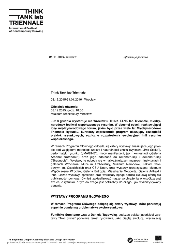 Już 3 grudnia wystartuje we Wrocławiu THINK TANK lab Triennale, międzynarodowy festiwal współczesnego rysunku. W obecnej edycji, reaktywującej