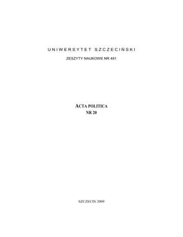 UNIWERSYTET SZCZECIŃSKI ZESZYTY NAUKOWE NR 481 ACTA POLITICA NR 20 SZCZECIN 2009 Rada Wydawnicza Urszula Chęcińska, Inga Iwasiów, Danuta Kopycińska, Izabela Kowalska-Paszt Piotr Niedzielski, Ewa Szuszkiewicz, Dariusz Wysocki Edward Włodarczyk – przewodniczący Rady Wydawniczej Aleksander Panasiuk – przewodniczący Senackiej Komisji ds. Wydawnictw Edyta Łongiewska-Wijas – redaktor naczelna Wydawnictwa Naukowego Recenzent prof. zw. dr hab. Andrzej Chodubski Redaktor naukowy Maciej Drzonek, Janusz Mieczkowski Redaktor Wydawnictwa Jadwiga Hadryś Korektor Renata Bacik Skład komputerowy Ewa Radzikowska-Król Copyright by Uniwersytet Szczeciński, Szczecin 2009 ISSN 1640-6818 ISSN 0860-0617 WYDAWNICTWO NAUKOWE UNIWERSYTETU SZCZECIŃSKIEGO Wydanie I. Ark. wyd. 9,5. Ark. druk. 11,0. Format B5. USPol 79/2009 SPIS TREŚCI ARTYKUŁY Jarosław J. Piątek – Wojna jako działanie kształtujące wojskowych ...... 5 Maciej Drzonek – Chrześcijaństwo, jedność, Europa – kilka uwag z perspektywy Jana Pawła II ......................................... 21 Małgorzata Radomska – Unijny Minister Spraw Zagranicznych w teoriach Unii Europejskiej. Personifikacja Wspólnej Polityki Zagranicznej i Bezpieczeństwa? ...................................................... 31 Renata Podgórzańska – Polska a Europejska Polityka Sąsiedztwa ......... 49 Andrzej Łuc – Wstępna ocena hiszpańskiego członkostwa we Wspólnotach Europejskich ......................................................... 63 Augusto Gamuzza – Transalpina. Not only a rail-station between three countries ........................................................................................... 77 Andrzej Ranke – O próbach totalizacji polskiego Ŝycia kościelnego – księŜa patrioci ............................................................................... 93 Łukasz Tomczak – Miejsce RACJI Polskiej Lewicy na scenie politycznej ........................................................................ 105 Janusz Mieczkowski – Przemiany w dostępie mniejszości narodowych do mediów na Pomorzu Zachodnim ................................................ 119 Piotr Chrobak – Referendum w sprawie odwołania Prezydenta Miasta Szczecina. Geneza, przebieg, wyniki ............................................... 145 4 RECENZJE ∗ OMÓWIENIA Dariusz Wybranowski – W kręgu świata arabsko-muzułmańskiego, pod red. Anny Barskiej, Kamila Minknera ...................................... 165 Dariusz Wybranowski – Robert Kagan, Potęga i Raj. Ameryka i Europa w nowym porządku świata ................................................ 172 ZESZYTY NAUKOWE UNIWERSYTETU SZCZECIŃSKIEGO NR 481 ACTA POLITICA NR 20 2008 ARTYKUŁY JAROSŁAW J. PIĄTEK WOJNA JAKO DZIAŁANIE KSZTAŁTUJĄCE WOJSKOWYCH Uzyskanie przez Polskę członkostwa w NATO poprawiło warunki realizacji polskiej polityki w zakresie bezpieczeństwa militarnego, stając się jednym z jej najwaŜniejszych instrumentów. Odgrywa ono centralną rolę w stosunku do uczestnictwa w innych wielostronnych strukturach bezpieczeństwa, programując w znacznym stopniu polskie działania w ich ramach. Wydawać by się mogło, iŜ dzięki niemu narodowe wysiłki na rzecz obrony narodowej i bezpieczeństwa osadzone będą w systemie bardziej efektywnym niŜ programy realizowane wyłącznie własnymi siłami. Sformalizowanie statusu i nabycie praw członkowskich nie oznacza jednak, Ŝe Polska osiągnęła faktyczną zdolność uczestniczenia we wszystkich przedsięwzięciach NATO. W wielu okolicznościach nasza pozycja jest słaba. Stawia to nas w gorszej sytuacji w organizacjach zajmujących się bezpieczeństwem międzynarodowym (zwłaszcza w NATO) oraz w ogólnym kontekście znaczenia czynnika siły w Ŝyciu międzynarodowym i dla roli państwa na scenie międzynarodowej. Profesor R. Kuźniar twierdzi: na ogólną liczbę ok. 57 tys. Ŝołnierzy, biorących udział w trzech operacjach NATO na obszarze byłej Jugosławii (Bośnia i Hercegowina, Koso- 6 Jarosław J. Piątek wo, Macedonia), udział Polski wynosił niespełna 900 Ŝołnierzy (czyli 1 ok. 1,5%); dane z kwietnia 2002 roku . Tymczasem działania zbrojne w ciągu ostatnich dwudziestu lat stopniowo i niepostrzeŜenie zmieniły swój charakter. Klasyczna wojna prowadzona przez państwa, która jeszcze w znacznym stopniu wyznaczała przebieg zimnowojennej rywalizacji, zdaje się przechodzić do historii. Państwa – jako faktyczni monopoliści wojny – abdykowały, a ich miejsce zajmują coraz częściej parapaństwowe struktury, a nawet przez prywatnych „przedsiębiorców wojennych”2. Wielu z nich prowadzi dla własnych korzyści wojny, których tła nie są w stanie wyjaśnić osoby zajmujące się ich analizą. U ich podłoŜa często leŜą prywatne interesy związane z handlem narkotykami, panowanie nad bogactwami naturalnymi, a nawet czerpanie korzyści z pomocy humanitarnej. To sprzyja juŜ na dziś – i z pewnością w przyszłości będzie jeszcze bardziej sprzyjać stopniowemu usamodzielnianiu (autonomizacji) form przemocy, podporządkowanych uprzednio wymogom militarnym, prowadzącego do utraty kontroli nad przebiegiem działań zbrojnych przez regularne armie i państwa je tworzące. W dalszej konsekwencji ograniczyć to moŜe nasze moŜliwości analizy przemocy zbrojnej. Podejmując próbę oceny współczesnych siła zbrojnych, naleŜy skoncentrować się na tym, w jakich, dlaczego i przez kogo prowadzonych działaniach zbrojnych współczesne wojsko będzie uczestniczyło. NaleŜy się zastanowić, czy jest ono do nich przygotowane. Wreszcie musi się pojawić pytanie, w jaki sposób te zmiany przebiegają. Do niedawna czynnikami determinującymi pytania o siły zbrojne było określenie gotowości do wojny masowej oraz zdolność do absorpcji zmian technicznych. Pierwszy z czynników został niemal definitywnie zarzucony, przynajmniej przez polskich wojskowych. W przypadku drugiego ich postaw