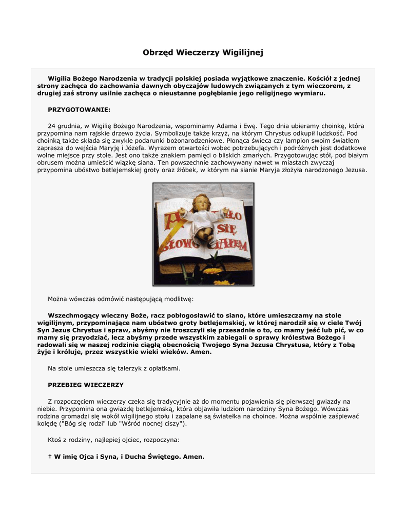 wigilijnym, przypominające nam ubóstwo groty betlejemskiej, w której narodził się w ciele Twój