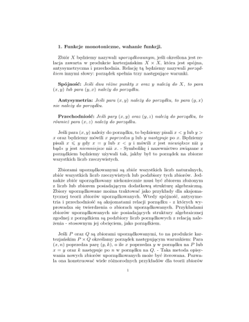 Twierdzenie 1.3 (E. Helly): Z dowolnego ciągu funkcji monotonicznych określonych na tym samym zbiorze uporządkowanym można