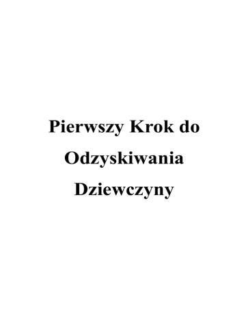 Pierwszy Krok do Odzyskiwania Dziewczyny Oto pierwszy krok do odzyskiwania dziewczyny. Jeśli chcesz, aby między wami było tak jak kiedyś (mówię tutaj o chemii miedzy wami) musisz odnowić uczucia między wami oraz przywrócić pewność, że pragniecie się nawzajem. Do kogo czujesz największy pociąg? Do piękności w stylu Moniki Bellucci? A może do kogoś, kto poraża inteligencją i poczuciem humoru? A może do tej, która ma dobre serce? A co z Tobą? Co twoja partnerka uważała w Tobie za atrakcyjne? Może wyglądasz jak Brad Pitt? Może byłeś osobą bardzo towarzyską? Musisz włożyć trochę czasu i energii w to jak wyglądasz i po prostu zadbać o siebie. Musisz to zrobić, jeśli chcesz, aby twoja ex znowu zainteresowała się Tobą. To trochę jakbyś tworzył lepszą wersję samego siebie dla niej, dzięki czemu będziesz miał dużo większą szansę, aby jej się spodobać i zrobić dobre wrażenie. Pamiętaj, że to, co jej się w Tobie podobało na początku wciąż może ją znowu Tobą zauroczyć i przyciągnąć do Ciebie. To jest siła atrakcyjności i przyciągania, która kieruje ludzi do siebie. Nie lekceważ tego, co tutaj mówię i wierz mi na słowo, że jest to, aż tak ważne. Zmiana wyglądu jest pierwszym krokiem do odzyskania dziewczyny. Dlaczego? SUPER HIPER ULTRA WAŻNE!!! Jest jeszcze jeden inny bardzo ważny psychologiczny powód, dlaczego tak ważne jest aby popracować nad wyglądem, zanim zaczniesz odzyskiwać dziewczynę. Musisz inaczej wyglądać od tego jak wyglądałeś, gdy byliście w związku. Musisz niejako przełamać rutynę i swój poprzedni wizerunek! Dlaczego to takie ważne? Już tłumaczę Masz czasami tak, że zapach albo jakieś miejsce czy nawet piosenka przyciąga stare wspomnienia. Dobre albo i złe. Przykładowo widzisz starego kumpla ze szkoły i od razu przypominają Ci się stare dobre imprezy. Nie wierzysz, to puść sobie dźwięk dzwonka szkolnego, to zobaczymy, o czym zaczniesz myśleć. Ludzie nieświadomie łączą emocje z tym, co widzą czują albo słyszą. To jest podświadome zachowanie, którego nie kontrolujemy. Na początku twojego związku nie było takich powiązanych z czymkolwiek emocji. Nie kojarzyłeś np. jakiejś piosenki z tym jak pierwszy raz tańczyliście albo jakiegoś miejsca ze wspaniałą randką. Oczywiście to samo dzieje się ze złymi wspomnieniami. Miałem kumpla który widząc wysoką blondynkę z długimi włosami natychmiast kojarzył ją ze swoją byłą i przygnębiało go to. Podobnie było z moją koleżanką, która od czas kiedy pogryzł ją pies panicznie boi się prawie każdego kundla. Zwykle kojarzymy przyjemność z policzalnymi cechami, które możemy wymienić np. u drugiej osoby. To oczywiście jest super, kiedy w związku wszystko idzie dobrze. Wtedy te powiązane emocje pozwalają nam być razem nawet przy cięższych sytuacjach i trudnych chwilach. Widzimy uśmiech drugiej osoby i od razu dobrze się to kojarzy z tymi wszystkimi wspaniałymi chwilami, które razem przeżyliście. W związkach, w których źle się dzieje to właśnie te złe emocje zaczynają brać górę nad dobrymi. Miły uśmiech zaczyna się kojarzyć ze złośliwym uśmiechem, kiedy Twoja dziewczyna wyśmiewa Cię. W rezultacie z czasem zaczynamy pozwiązywać te złe emocje z cechami charakteru tej drugiej osoby. Tak powstaje zwyczaj/ nawyk/ pewien wzór zachowania. Przykładowo jeśli dziewczyna widzi Cię z piwem w ręki i wielokrotnie zachowywałeś się jak burak po pijaku, to od razu będzie źle się czuć kiedy tylko zobaczy Cię pijącego kolejne piwo. Jej umysł natychmiast będzie kojarzył fakty: piwo = chamskie zachowanie, którego ona nie znosi. W tej sytuacji po prostu widzisz osobę i już złe uczucia i emocje zaczynają się spiętrzać. W związku z tym, ze dziewczyna Cię zostawiła musisz przełamać ten „wzór. Dlatego, że po prostu zacząłeś się jej kojarzyć z czymś negatywnym. Słyszałeś kiedyś takie słowa od dziewczyny: „Rzygać mi się chce jak go widzę” Jest to idealna ilustracja jak (prawdopodobnie) czuje się dziewczyna, którą chcesz odzyskać. Nie pozostaje Ci zrobić nic innego jak przerwać ten wzór, zniszczyć go i przełamać. Polega to oczywiście na zmienieniu czegoś w sobie, żeby już nie kojarzyć się negatywnie. Rozumiesz teraz, o czym mówiłem? Dzięki temu właśnie, kiedy twoja była zobaczy Cię innego, odświeżonego „lepszego” nie będzie Cię źle kojarzyć. Dzięki innemu lepszemu wyglądowi ona nie będzie Cię kojarzyć z negatywnymi emocjami. Będziesz miał jak gdyby „czystą” kartę z psychologicznego punkty widzenia. Jest to całkowicie nieświadome, bo podświadome, więc tym większy efekt dzięki temu uzyskasz. Ale to nie wszystkie bonusy płynące z zmiany i poprawienia swojego wyglądu. Dzięki temu, że lepiej wyglądasz lepiej się ubierasz itp. masz więcej pewności siebie i ogólnie jesteś atrakcyjniejszy, jako mężczyzna. „Zmień swój wygląd, żeby nie kojarzyć się negatywnie dziewczynie, którą chcesz odzyskać” Zacznij od ciała To najłatwiejsza cześć Twojej metamorfozy i jednocześnie taka, która przynajmniej powinna dać największe rezultaty. Kiedy twoje ciało jest zdrowe, masz więcej energii, jesteś pewniejszy siebie i lepiej się czujesz. W zdrowym ciele zdrowy duch. Być może przez to rozstanie wszystko Ci obrzydło. Przestałeś dbać o siebie i żresz, co popadnie. Chipsy, pizza pijesz piwsko albo coca cole oglądając bez sensu telewizje. Może i wręcz przeciwnie od rozstania straciłeś apetyt i jesz dwa łyki wody na śniadanie obiad i kolację paląc przy tym 3 paczki fajek. Niezależnie, co się z Tobą dzieje nic z tego nie pomaga Ci odzyskać byłą. Jeśli chcesz rezultatów musisz zwalczyć to, co sprowadza Cię w dół. Przygotowałem ten rozdział właśnie specjalnie pod tym kątem. Mało tego ten rozdział pomoże Ci też walczyć z depresją i beznadzi