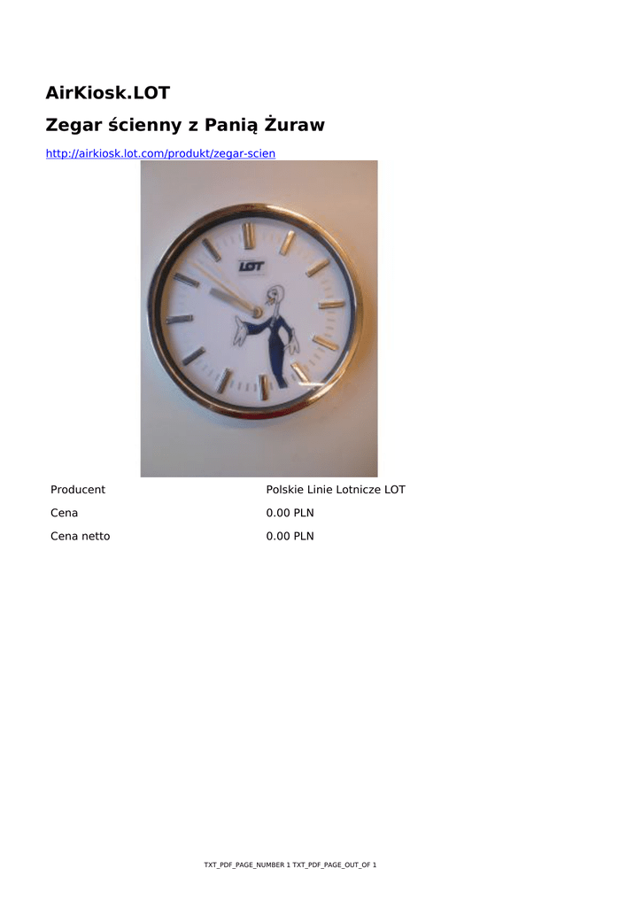 AirKiosk.LOT Zegar ścienny z Panią Żuraw http://airkiosk.lot.com/produkt/zegar-scien Producent Polskie Linie Lotnicze LOT Cena 0.00 PLN Cena netto 0.00 PLN TXT_PDF_PAGE_NUMBER 1 TXT_PDF_PAGE_OUT_OF 1