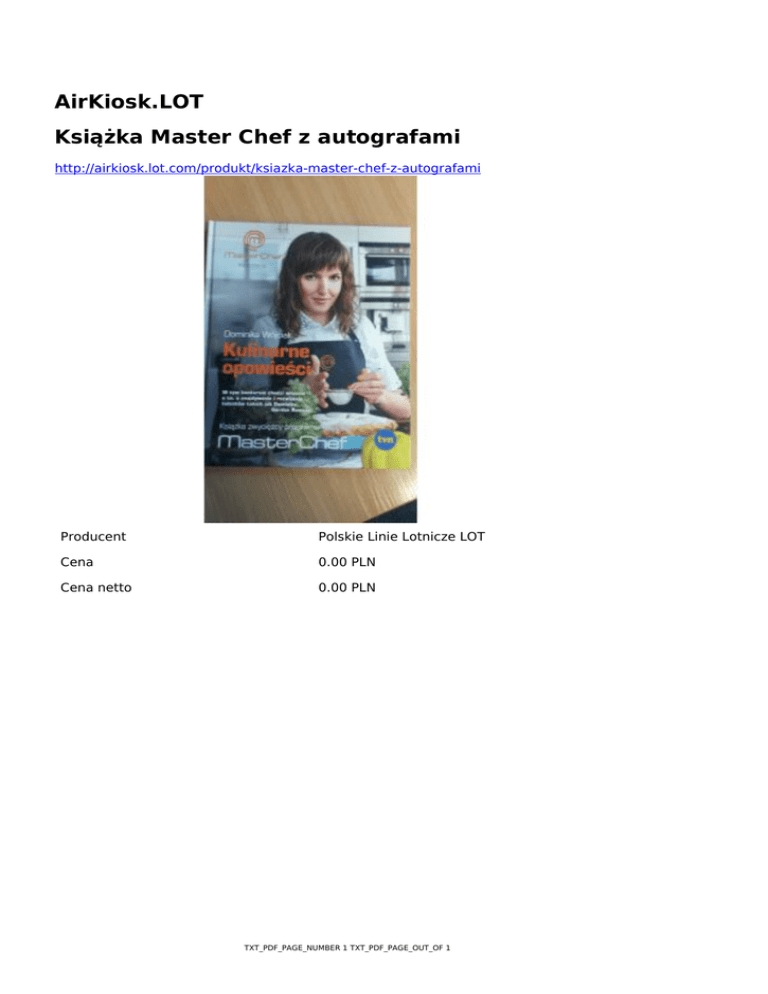AirKiosk.LOT Książka Master Chef z autografami http://airkiosk.lot.com/produkt/ksiazka-master-chef-z-autografami Producent Polskie Linie Lotnicze LOT Cena 0.00 PLN Cena netto 0.00 PLN TXT_PDF_PAGE_NUMBER 1 TXT_PDF_PAGE_OUT_OF 1
