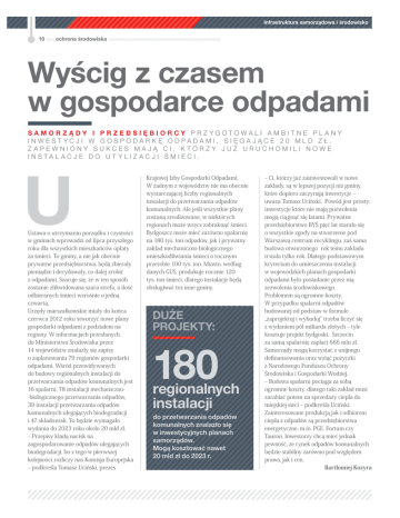 Infrastruktura samorządowa i środowisko 10 ochrona środowiska Wyścig z czasem w gospodarce odpadami S a m o r z ą d y i p r z e d si ę b i o r c y p r z y g o t o w a l i a m b i t n e p l a n y inwest ycji w gospoda rkę odpa da mi, sięga jące 20 mld zł. Zapewniony sukces mają ci, którzy już uruchomili nowe i n stal ac j e d o u t y l i z ac j i ś m i e c i. U Ustawa o utrzymaniu porządku i czystości w gminach wprowadzi od lipca przyszłego roku dla wszystkich mieszkańców opłaty za śmieci. To gminy, a nie jak obecnie prywatne przedsiębiorstwa, będą zbierały pieniądze i decydowały, co dalej zrobić z odpadami. Szacuje się, że w ten sposób zostanie zlikwidowana szara strefa, a ilość odbieranych śmieci wzrośnie o jedną czwartą. Urzędy marszałkowskie miały do końca czerwca 2012 roku stworzyć nowe plany gospodarki odpadami z podziałem na regiony. W informacjach przesłanych do Ministerstwa Środowiska przez 14 województw znalazły się zapisy o zaplanowaniu 79 regionów gospodarki odpadami. Wśród przewidywanych do budowy regionalnych instalacji do przetwarzania odpadów komunalnych jest 16 spalarni, 78 instalacji mechaniczno-biologicznego przetwarzania odpadów, 39 instalacji przetwarzania odpadów komunalnych ulegających biodegradacji i 47 składowisk. To będzie wymagało wydania do 2023 roku około 20 mld zł. – Przepisy kładą nacisk na zagospodarowanie odpadów ulegających biodegradacji, bo z tego w pierwszej kolejności rozliczy nas Komisja Europejska – podkreśla Tomasz Uciński, prezes Krajowej Izby Gospodarki Odpadami. W żadnym z województw nie ma obecnie wystarczającej liczby regionalnych instalacji do przetwarzania odpadów komunalnych. Ale jeśli wszystkie plany zostaną zrealizowane, w niektórych regionach może wręcz zabraknąć śmieci. Bydgoszcz może mieć zarówno spalarnię na 180 tys. ton odpadów, jak i prywatny zakład mechaniczno-biologicznego unieszkodliwiania śmieci o rocznym przerobie 100 tys. ton. Miasto, według danych GUS, produkuje rocznie 120 tys. ton śmieci, dlatego instalacje będą obsługiwać też inne gminy. duże projekty: 180 regionalnych instalacji do przetwarzania odpadów komunalnych znalazło się w inwestycyjnych planach samorządów. Mogą kosztować nawet 20 mld zł do 2023 r. – Ci, którzy już zainwestowali w nowe zakłady, są w lepszej pozycji niż gminy, które dopiero zaczynają inwestycje – uważa Tomasz Uciński. Powód jest prosty: inwestycje które nie mają pozwolenia mogą ciągnąć się latami. Prywatne przedsiębiorstwo BYŚ pięć lat starało się o wszystkie zgody na stworzenie pod Warszawą centrum recyklingu, zaś sama budowa otworzonego rok temu zakładu trwała tylko rok. Dlatego podstawowym kryterium do umieszczenia instalacji w wojewódzkich planach gospodarki odpadami było posiadanie przez nią zezwolenia środowiskowego. Problemem są ogromne koszty. W przypadku spalarni odpadów budowanej od podstaw w formule „zaprojektuj i wybuduj” trzeba liczyć się z wydaniem pół miliarda złotych – tyle kosztuje projekt bydgoski, Szczecin za samą spalarnię zapłaci 666 mln zł. Samorządy mogą korzystać z unijnego dofinansowania oraz wziąć pożyczki z Narodowego Funduszu Ochrony Środowiska i Gospodarki Wodnej. – Budowa spalarni pociąga za sobą ogromne koszty, dlatego taki zakład musi zarabiać potem na sprzedaży ciepła do miejskiej sieci – podkreśla Uciński. Zainteresowane produkcją jak i odbiorem ciepła z odpadów są przedsiębiorstwa energetyczne, m.in. PGE, Fortum czy Tauron. Inwestorzy chcą mieć jednak pewność, że rynek odpadów komunalnych będzie stabilny zarówno pod względem prawa, jak i cen. Bartłomiej Kozyra 11 Fot. Ryszard Waniek ochrona środowiska Jak wybrać firmę, która będzie odbierać śmieci w gminach Ustawa o utrzymaniu czystości i porządku w gminach wskazuje w swoich przepisach, iż odbiorem odpadów od właścicieli nieruchomości zajmuje się przedsiębiorca, wyłoniony w drodze przetargu ( art. 6 d ust. 1 ustawy) 1. Należy zorganizować jeden przetarg na odbieranie odpadów bądź jeden przetarg na odbieranie i zagospodarowanie odpadów – bez możliwości jego podziału na części. Odbiór musi dotyczyć wszystkich odpadów, a więc także odpadów selektywnie zbieranych przez właścicieli nieruchomości; 2. Jeśli gmina zostanie podzielona na sektory, przetargi organizuje się dla każdego z wyznaczonych sektorów oddzielnie. dopuszczalne jest przeprowadzenie jednego przetargu z możliwością składania ofert częściowych (na poszczególne sektory); 3. Gminna jednostka organizacyjna musi przekształcić się w spółkę prawa handlowego, by mogła startować w przetargu; 4. Przedsiębiorca wyłoniony w drodze przetargu zobowiązany jest do kierowania odpadów do regionalnej instalacji przetwarzania odpadów komunalnych. Gmina ma do wyboru: jeśli ma własną regionalną instalację, wówczas w SIWZ wskazuje ją odbierającemu odpady, natomiast jeśli jej nie posiada, powinna ją wyłonić w trybie art. 3a ustawy o utrzymaniu czystości i porządku w gminach; 5. Do przetargów, w zakresie nieuregulowanym w ustawie o utrzymaniu czystości i porządku w gminach stosuje się ustawę z dnia 29 stycznia 2004 r. – Prawo zamówień publicznych 6. W przeciwieństwie do odbierania odpadów komunalnych od właścicieli nieruchomości prowadzenie punktów selektywnego zbierania, może się odbywać na podstawie przepisów ustawy z dnia 20 grudnia 1996 r. o gospodarce komunalnej (Dz. U. z 2011 r. Nr 45, poz. 236), a więc gmina może tę działalność prowadzić m.in. poprzez własne jednostki budżetowe; 7. To gmina organizuje system gospodarowania odpadami m.in. w uchwale podejmowanej na podstawie art. 6 ust. 3 ustawy określa szczegółowy sposób i zakres świadczonych usług. Elementem tej uchwały może być określenie, które odpady są odbierane z terenu nieruchomości, a które przez punkty selektywn