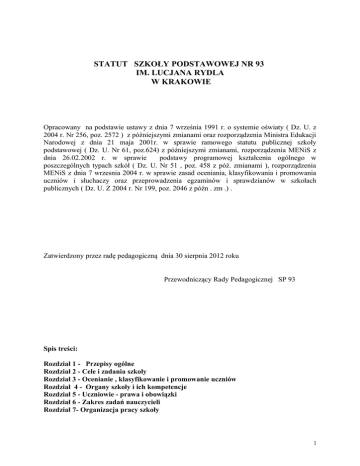 statut publicznej sześcioletniej szkoły podstawowej nr 93