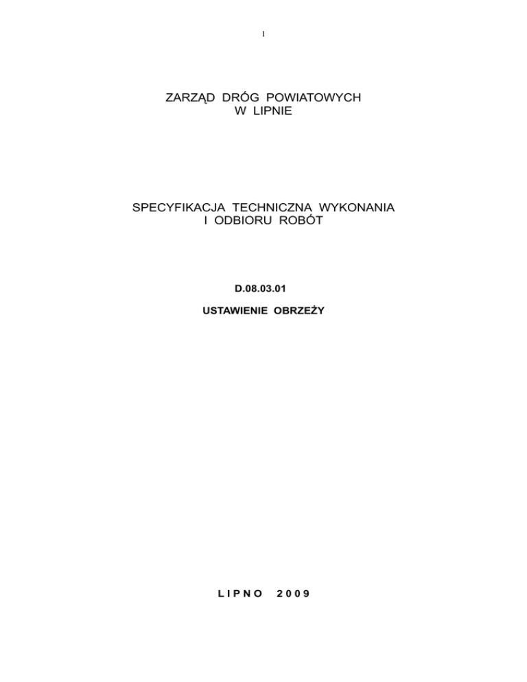 zarząd dróg powiatowych w lipnie specyfikacja