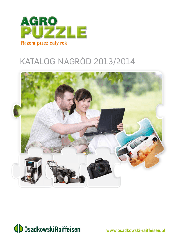 AGRO PUZZLE Razem przez cały rok KATALOG NAGRÓD 2013/2014 www.osadkowski-raiffeisen.pl Zasady przystąpienia do Programu, czyli jak to działa? Organizatorem Programu jest firma Osadkowski Raiffeisen Sp. z o.o. z siedzibą ul. Daszyńskiego 2 A, 62-300 Września. 1 2 Zgłaszasz udział Do udziału w Programie Partnerskim AgroPuzzle przystąpić można poprzez poprawne wypełnienie Formularza Zgłoszeniowego i dostarczenie go przedstawicielowi Organizatora lub przesłanie listem poleconym na adres: Osadkowski Raiffeisen Sp. z o.o., ul. Daszyńskiego 2 A, 62-300 Września z dopiskiem „AgroPuzzle”. Zakładamy konto Zakładane jest indywidualne konto prowadzone w systemie elektronicznym u Organizatora, na którym gromadzone są punkty. Informacje o liczbie zebranych punktów można uzyskać, dzwoniąc pod numer: 61 438 00 26 lub u przedstawiciela Organizatora. Robisz zakupy i zbierasz punkty 3 4 5 Zarejestrowani Uczestnicy Programu AgroPuzzle kupują wybrane towary, usługi oraz ich kombinacje oferowane przez Organizatora, które zamieszczane będą na liście towarów premiowanych w tzw. Katalogu Puzzli. Lista zawierać będzie wartości punktowe oraz czas obowiązywania promocji. Informacje na temat listy towarów premiowanych będą udostępnione na stronie internetowej www.osadkowski-raiffeisen.pl. Katalog Puzzli zostanie również udostępniony w siedzibie i u przedstawiciela Organizatora. Przy zakupie oferowanych przez Organizatora towarów, usług oraz ich kombinacji objętych promocją Uczestnik promocji nabywa punkty, które będzie mógł wymienić na nagrody. Szczegółowe warunki naliczania punktów oraz sposób ich realizacji opisany jest w regulaminie promocji. Wybierasz nagrody Gdy Uczestnik Programu AgroPuzzle zbierze określoną liczbę punktów, może je wymienić na wiele atrakcyjnych nagród. Rodzaj nagród oraz wartość punktowa wymagana do ich realizacji zawarte są w niniejszym Katalogu Nagród. Aby zamówić nagrody, trzeba poprawnie wypełnić Formularz Zamówienia Nagród, który znajduje się u przedstawiciela Organizatora. Wypełniony Formularz można przekazać przedstawicielowi Organizatora lub przesłać listem poleconym na adres siedziby Organizatora. Odbierasz nagrody Zamówione nagrody są realizowane w ciągu 21 dni roboczych od dnia wpłynięcia wypełnionego Formularza Zamówienia Nagród oraz od potwierdzenia dostępności wybranych nagród. Warunkiem wydania nagrody jest pisemne potwierdzenie jej odbioru. Koszt przesyłki ponosi Organizator. Nagrody mogą w okresie ważności Katalogu Nagród zostać wymienione na artykuły, które są innym modelem tego samego typu towaru i mają zbliżone parametry techniczne. Na zdjęciach przedstawione zostały przykładowe wzory i kolory. Nagrody są dostępne do wyczerpania zapasów. Warunki promocji AgroPuzzle określają prawa i obowiązki Organizatora i Uczestników promocji. Szczegółowe warunki promocji reguluje regulamin. Aktualne informacje znajdują się na stronie internetowej www.osadkowski-raiffeisen.pl. AGRO PUZZLE cały rok rok Razem przez cały Szanowni Państwo, witamy w Programie AgroPuzzle. Cieszymy się, że są Państwo z nami. Tworząc go, mieliśmy na uwadze uatrakcyjnienie Państwu zakupów dokonywanych w naszej firmie. Popularność, jaką od samego początku cieszy się Program, świadczy o tym, że cel został osiągnięty. Motywuje nas to do dalszego rozwoju i do wprowadzania coraz nowszych i atrakcyjniejszych nagród dobranych zawsze tak, aby każdy znalazł coś dla siebie lub swoich bliskich. W przygotowanym Katalogu można znaleźć zarówno takie nagrody, które ułatwią codzienne życie, jak i te, które zdecydowanie mogą je uprzyjemnić – a wszystkie są wysokiej klasy i jakości, znanych oraz szanowanych marek. Różnorodna tematyka i zróżnicowana punktacja ułatwią dokonywanie wyboru. Zachęcamy Państwa do zakupów w naszej firmie oraz do aktywnego udziału w Programie AgroPuzzle. Zespół AgroPuzzle Nie samą pracą człowiek żyje? Oczywiście! Dlatego przygotowaliśmy kilka propozycji wyjazdów w miejsca, w których można złapać wiatr w żagle i naładować duchowe akumulatory. Znajdzie się też coś dla miłośników mocnych wrażeń i adrenaliny! Wyjazd zagraniczny realizacja w formie vouchera: bilety lotnicze, rezerwacje hotelowe pełna i zróżnicowana oferta wyjazdów mnóstwo możliwości do wyboru gwarancja zadowolenia sam wybierasz kierunki i dogodny termin Wyjazd szkoleniowy Cypr + Węgry Niezapomniane przeżycia rolnictwo na Węgrzech realizacja w formie vouchera safari jeepem do wodospadów w górach Troodos niestandardowy pomysł na zagospodarowanie czasu wolnego łowienie ośmiornic wiele możliwości do wyboru, np. lot balonem, nurkowanie, skoki spadochronowe, gokarty, paintball jazda na prawdziwym torze wyścigowym program wyjazdu do 20.08.2013 kt 1 0p 0 0 8 Nr 1.1 Wyjazd szkoleniowo-turystyczny 1.3 kt 0p 0 0 5 4 Nr 1. wspaniały pomysł na relaks do wyboru najlepsze hotele, pensjonaty i salony SPA w całej Polsce pokażemy, jak wygląda rolnictwo na świecie informacja o konkretnym kierunku wyjazdu od 01.12.2013 AGROPUZZLE KATALOG NAGRÓD Nr realizacja w formie vouchera zabierzemy Cię w ciekawe miejsca 4 sam wybierasz rodzaj atrakcji i dogodny termin 10 wSPAniałe weekendy zarezerwuj już teraz termin na wyjazd w 2014 r. z Grupą Osadkowski program wyjazdu do 20.08.2014 ekstremalne doznania t pk 0 0 0 1 0 8 00 Nr pkt 1.2 wysoki standard usług bogata oferta zabiegów sam wybierasz formę wypoczynku i dogodny termin kt 0p 0 5 2 5 Nr 1. 5 WYPOCZYNEK I PRZEŻYCIA WYPOCZYNEK I PRZEŻYCIA Przeżyj to sam! W zdrowym ciele zdrowy duch. Podstawa to ruch! Bogaty wybór urządzeń poprawiających kondycję i samopoczucie. Każdy znajdzie coś dla siebie. Mamy do wyboru zarówno przyrządy dla domatorów, jak i produkty sportowe dla tych, którzy wolą rekreację na świeżym powietrzu. SPORT I REKREACJA SPORT I REKREACJA Rower górski MERIDA koła 26