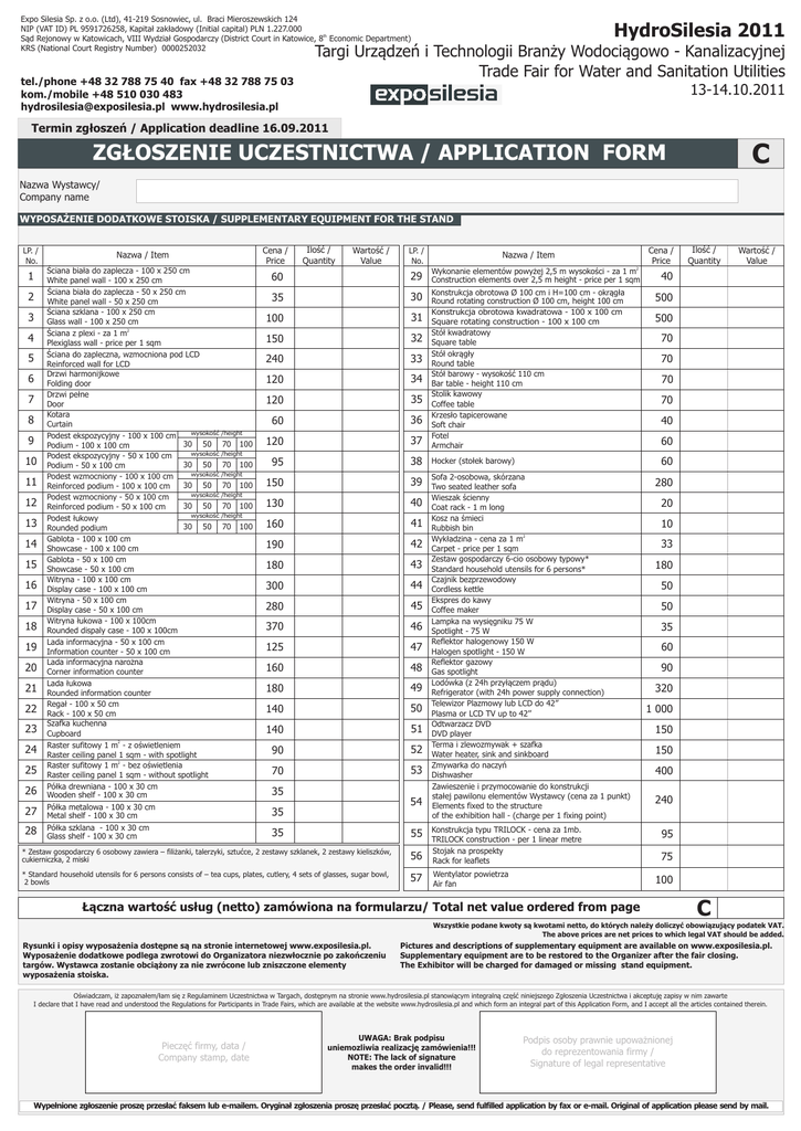 C ZG£OSZENIE UCZESTNICTWA / APPLICATION FORM